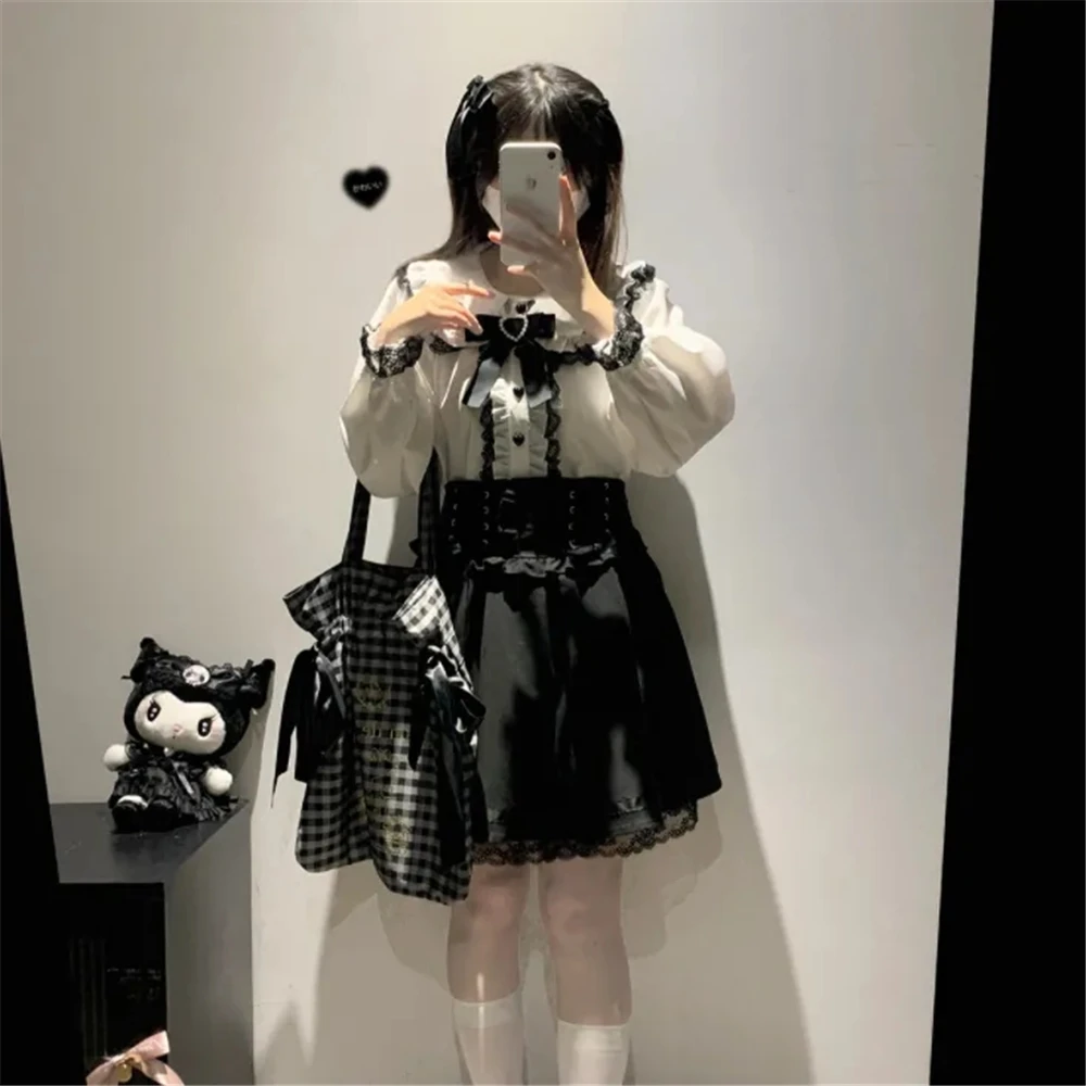 8 reviews for Jirai Kei Peter Pan Collar Japan Blouse Y2K Long Sleeves Lolita Crop Top Sweet Patchwork Bow Spring Kawaii Vintage Lace Jk Shirt