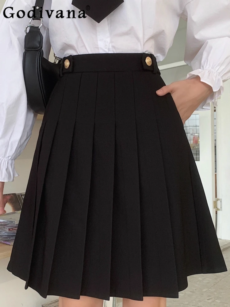 Jk Large Size Double Pocket Medium and Long Pleated Skirt Girl Summer High Waist A-line College Versatile Age-reducing Skirts