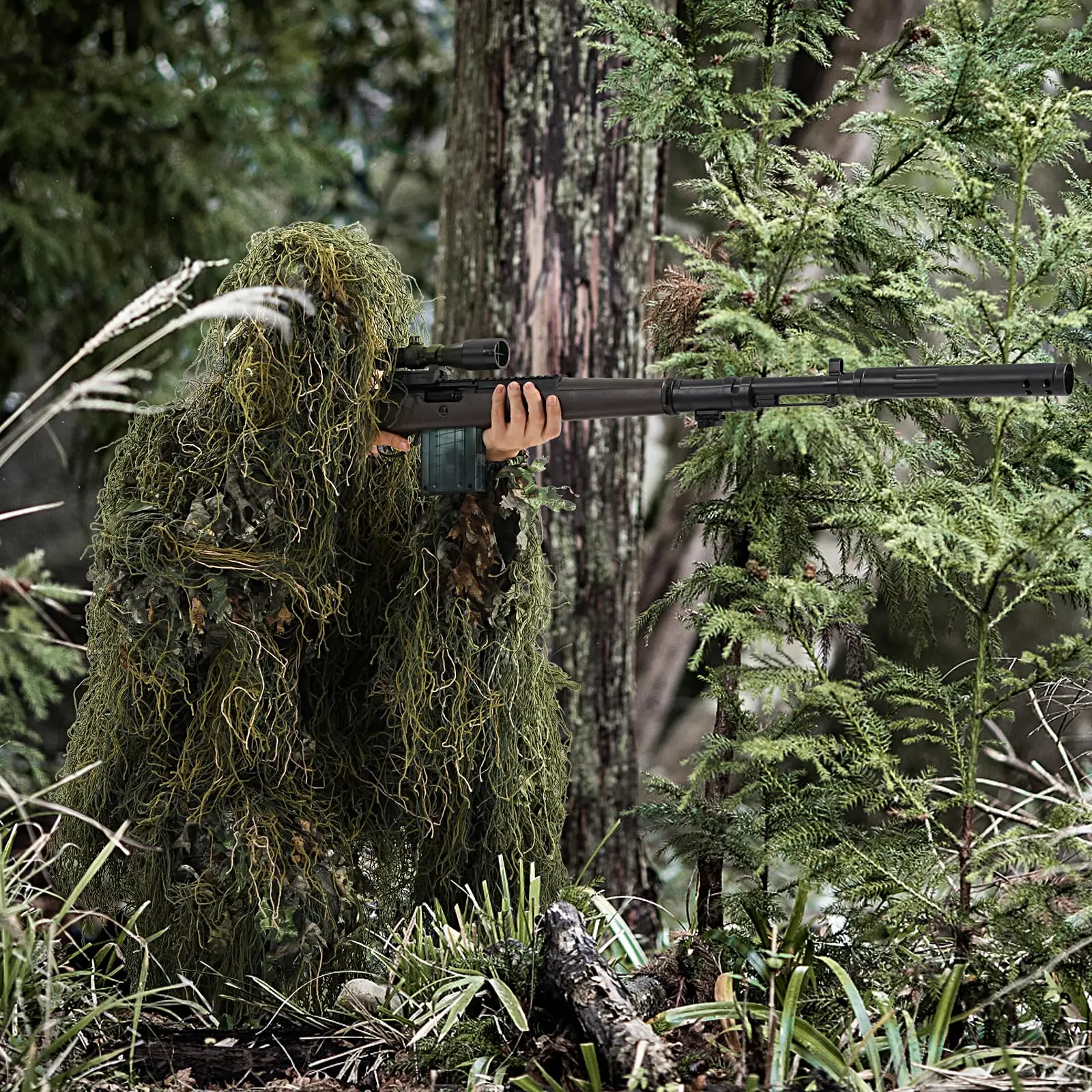 ✅【Wide Applications】- For Outdoor Hunting,Funny Parties,Halloween Costume, Stalking, Wildlife Photography,Birdwatching,Film Sets,Nightclubs,Kids Play Dens,Tree Houses,etc. The suit blends perfectly into trees, grass and surrounding shrubbery. You can literally disappear into the bushes and the surrounding habitat. This ghillie suit will be a helper for your hunting or a hit costume during festival.