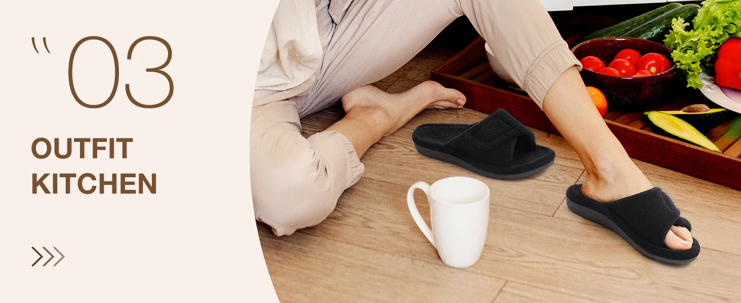 【Indoor and Outdoor】The EVA outsole of these functional slippers is lightweight and durable, offering excellent slip resistance on smooth surfaces, making them perfect for both indoor and outdoor use. You can easily step outside to grab the mail, walk the dog, or take out the trash without needing to change shoes