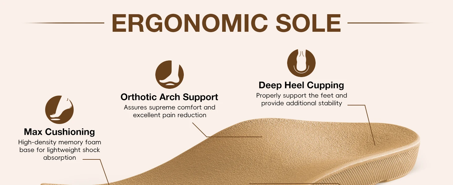 【Orthopedic Slippers】Featuring an ergonomic footbed to distribute pressure, and a soft EVA midsole for shock absorption, Litfun orthotic slippers are designed to provide excellent arch support, ensuring maximum comfort, especially during extended wear, and are great for those with Plantar Fasciitis, Arthritis, and Swollen Feet