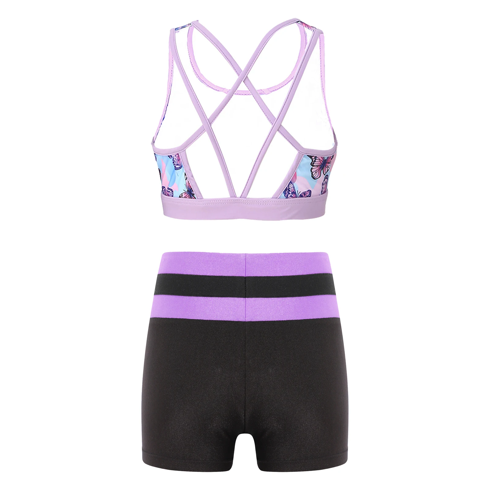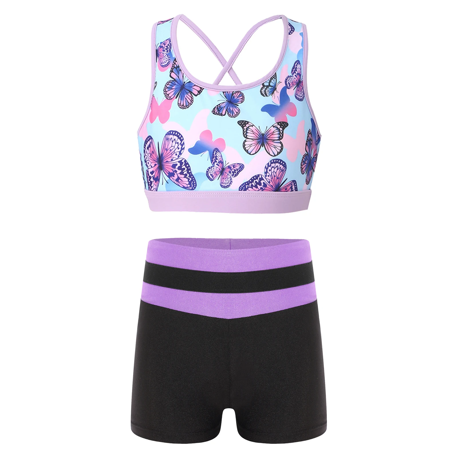 Kids Girls 2 Pieces Swimsuit Bikini Tankini Set Crop Tank Tops and Booty Shorts Dance Outfits Gymnastics Ballet Dance Costumes