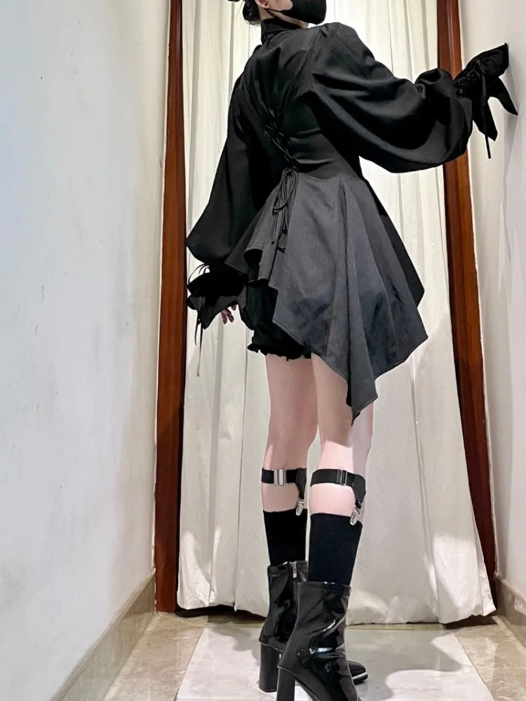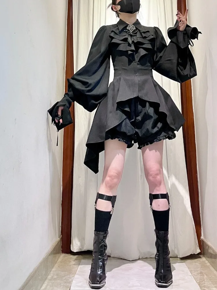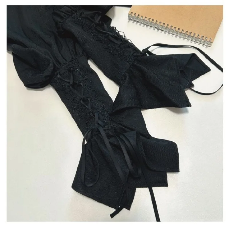 Kimutomo JK Shirts Women Japanese Vintage Lolita Irregular Blouse Lace Bandage Flare Sleeve Ruffles Y2k Aesthetic Kawaii Tops