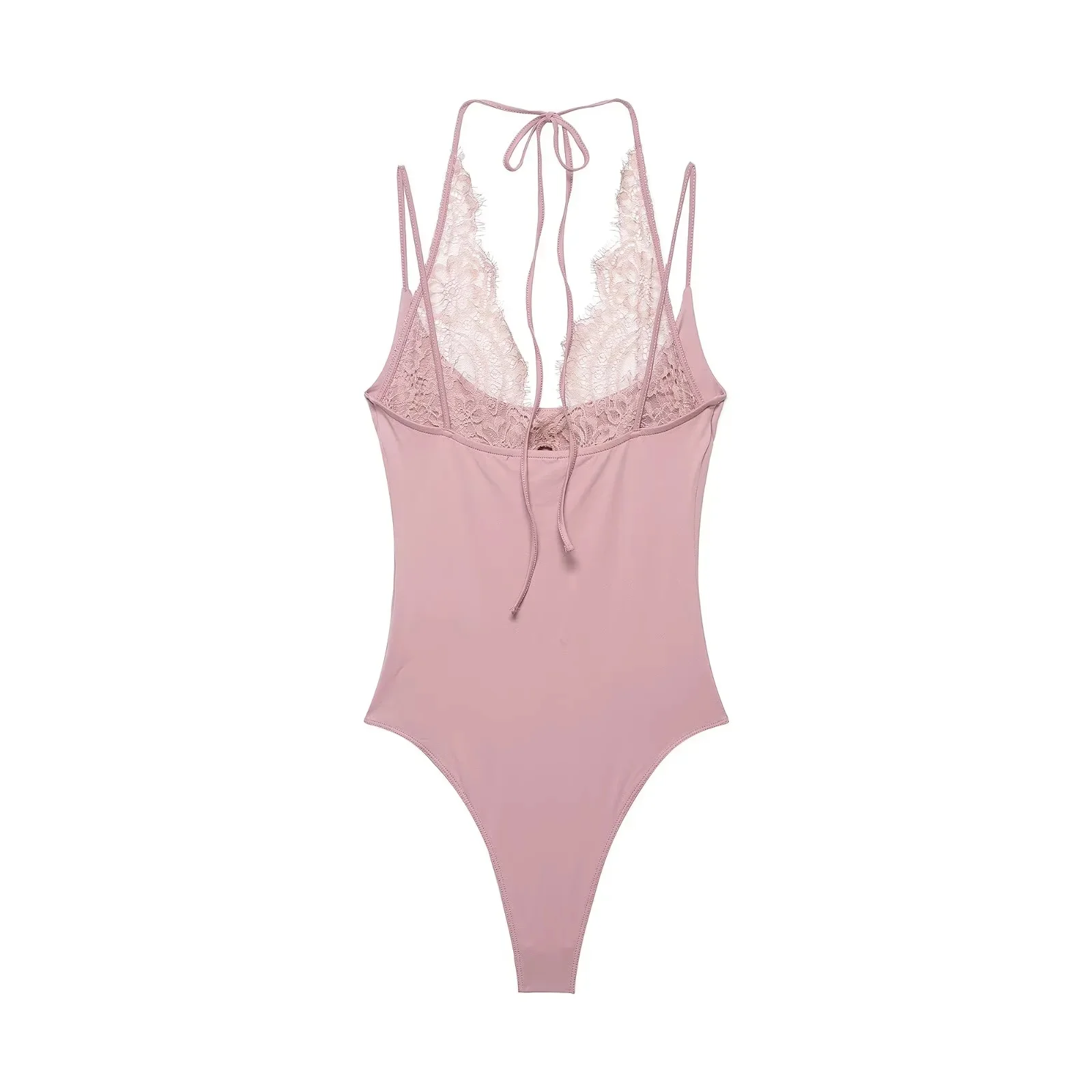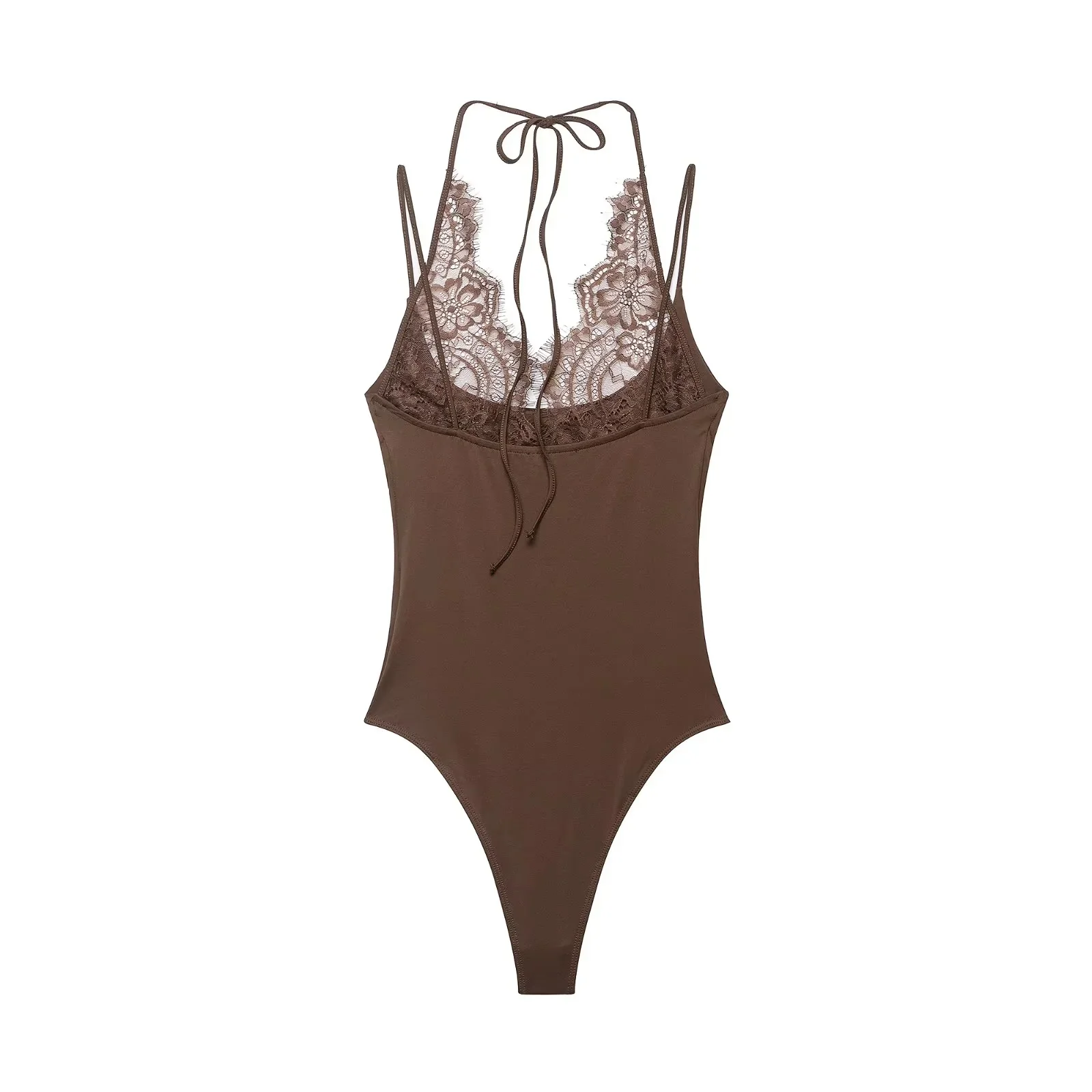 KONDALA Trendy Party Sexy Women Jumpsuit Patchwork Lace Halter Backless Bodysuit New Fashion 2026 Spring Summer Holiday Jumpsuit
