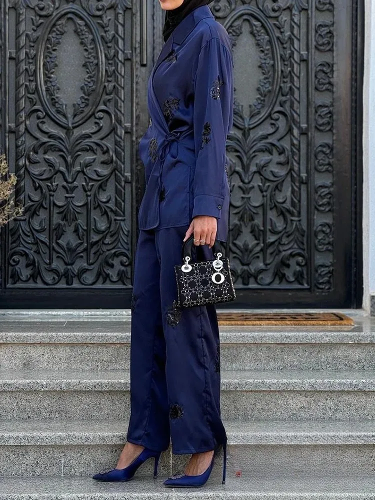 KONDALA Vintage Chic Casual Women Suit V Neck Pockets Blazer Straight Loose Pants New Fashion 2024 Autumn Office Lady Set