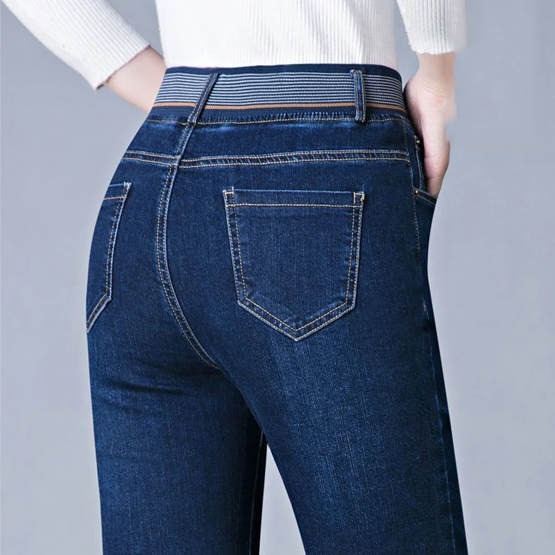 Korean Big Size 36 Straight Jeans Women Casaul Vintage Denim Pants Retro Trousers High Waist Vaqueros Stretch Kot Pantalones