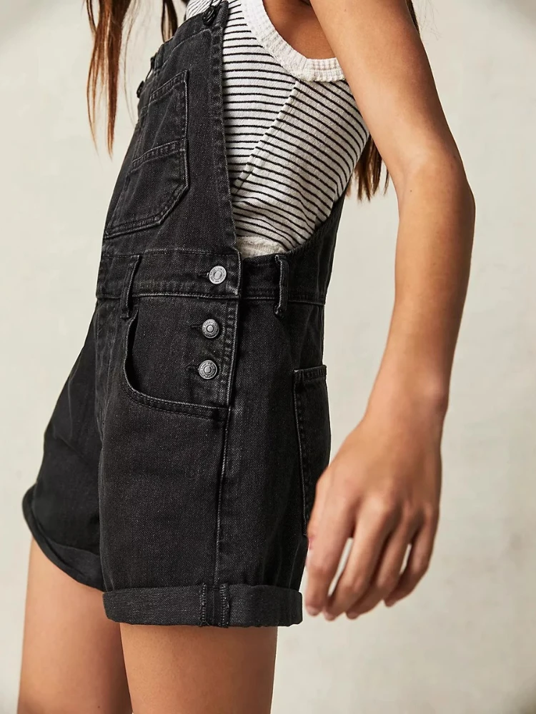 Korean Fashion Chic Jumpsuits Overalls Baggy Shorts Vintage Black Denim Rompers Women Sleeveless High Waist Jeans Play Suits