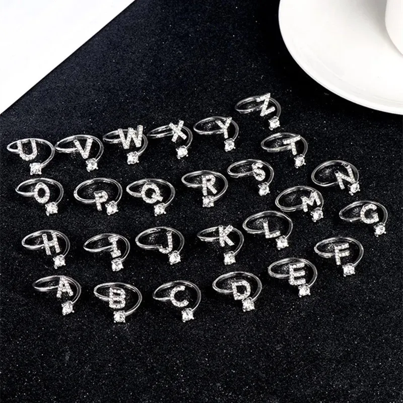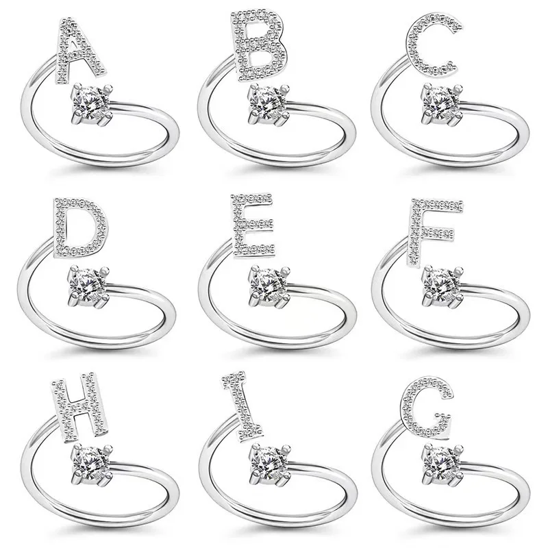 LATS Zircon Initial A-Z Letter Rings for Women Girl Adjustable Opening Ring Name Alphabet Female Wedding Fashion Jewelry Gift