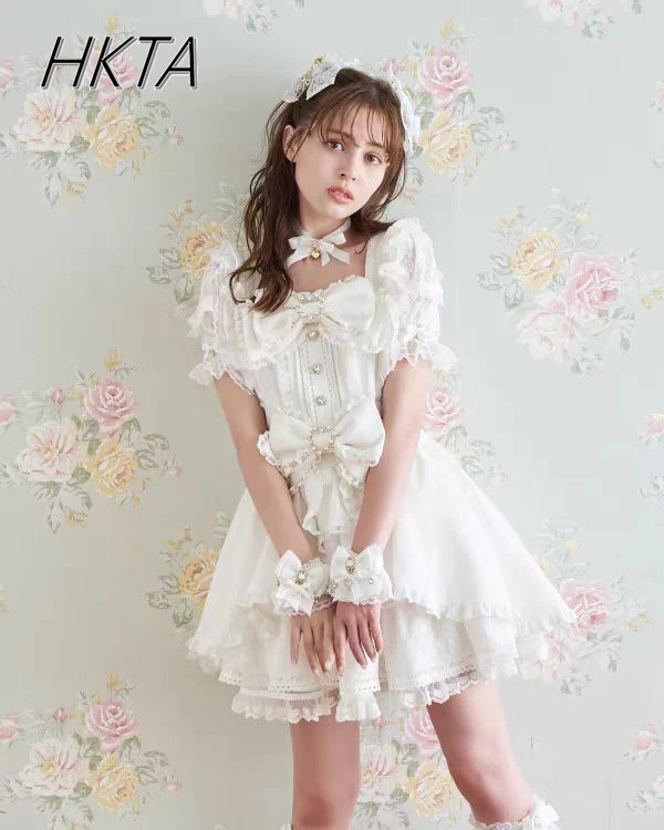 Liz Dress Set Women Outfit Japanese Cute Girl Mini Mass Production Sweet Bow Short Sleeve Lolita Cake Dress Shorts Two-piece Set