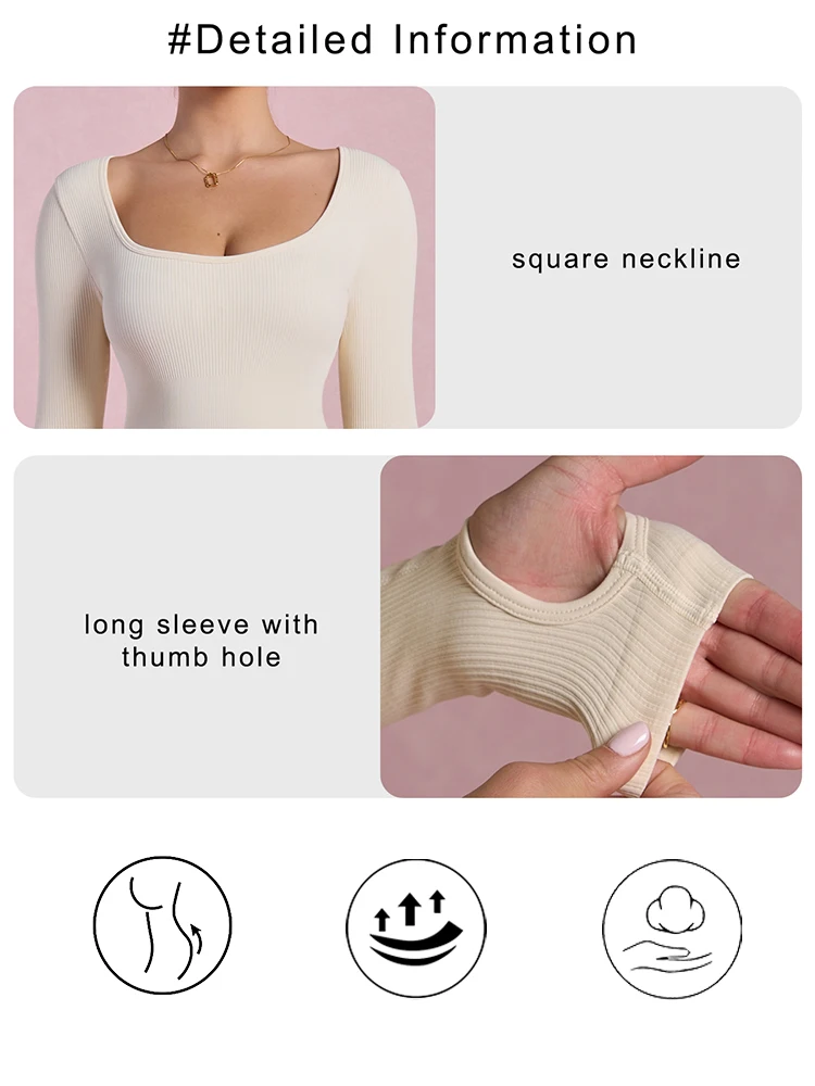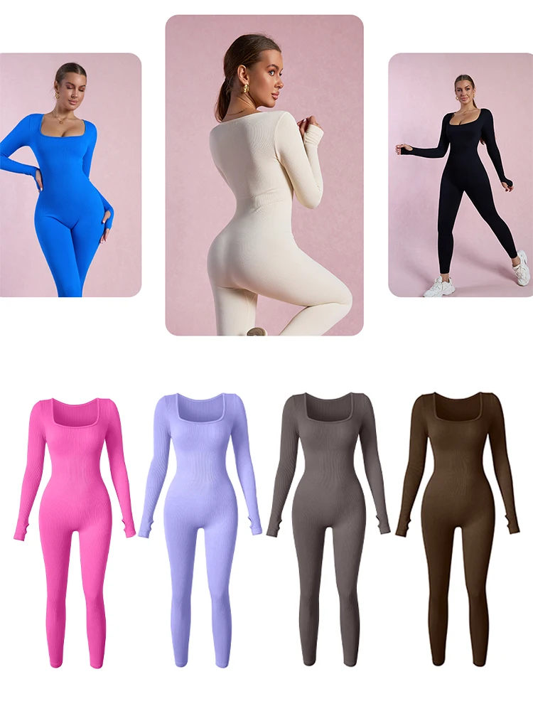 Long Sleeved Jumpsuit Women Square Collar High Waist Bodycon One-piece Leggings Seamless Casual Sports Jumpsuit Bodysuit