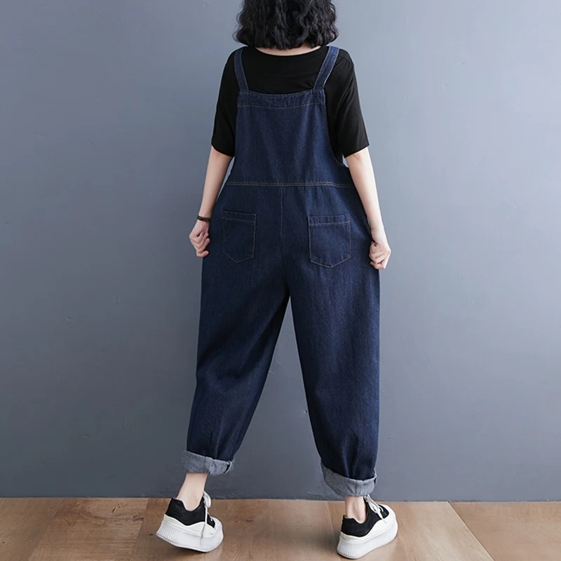 Loose Oversized Mom Jeans Overalls Women Casual Streetwear Wide Leg Denim Jumpsuit Vintage Strap Dungarees Baggy Cargo Pants