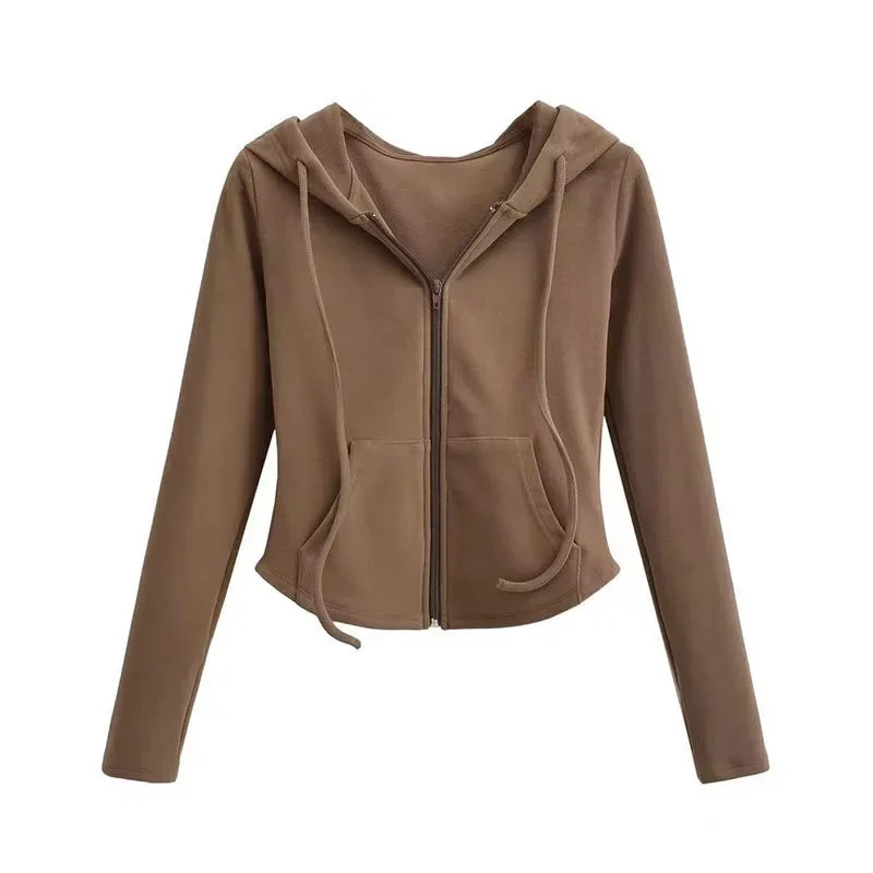 Lucyever Cropped Hooded Zip-Up Jacket Women Autumn New Slim Long Sleeve Y2K Sweatshirts Female Solid Streetwear Sports Hoodies