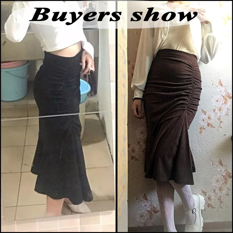 Lucyever Fashion High Waist Midi Skirts for Women 2025 Spring Slim Fit Hip Mermaid Skirt Woman Korean Ruffles Brown Skirts 2XL
