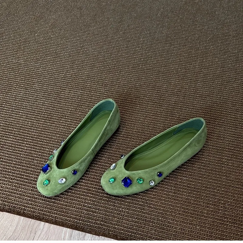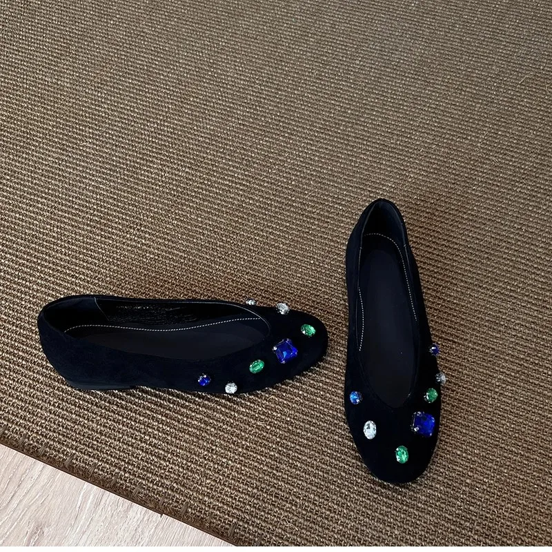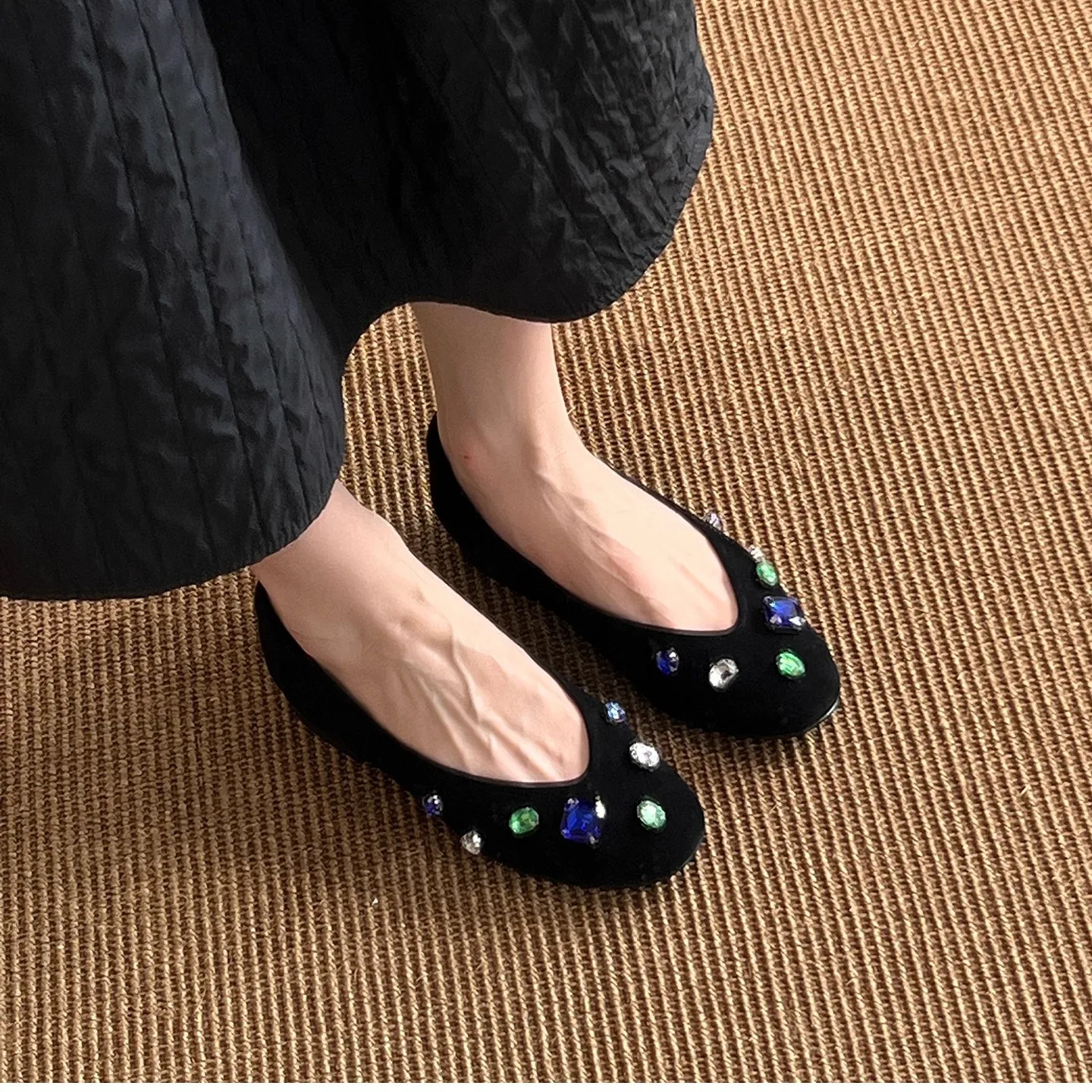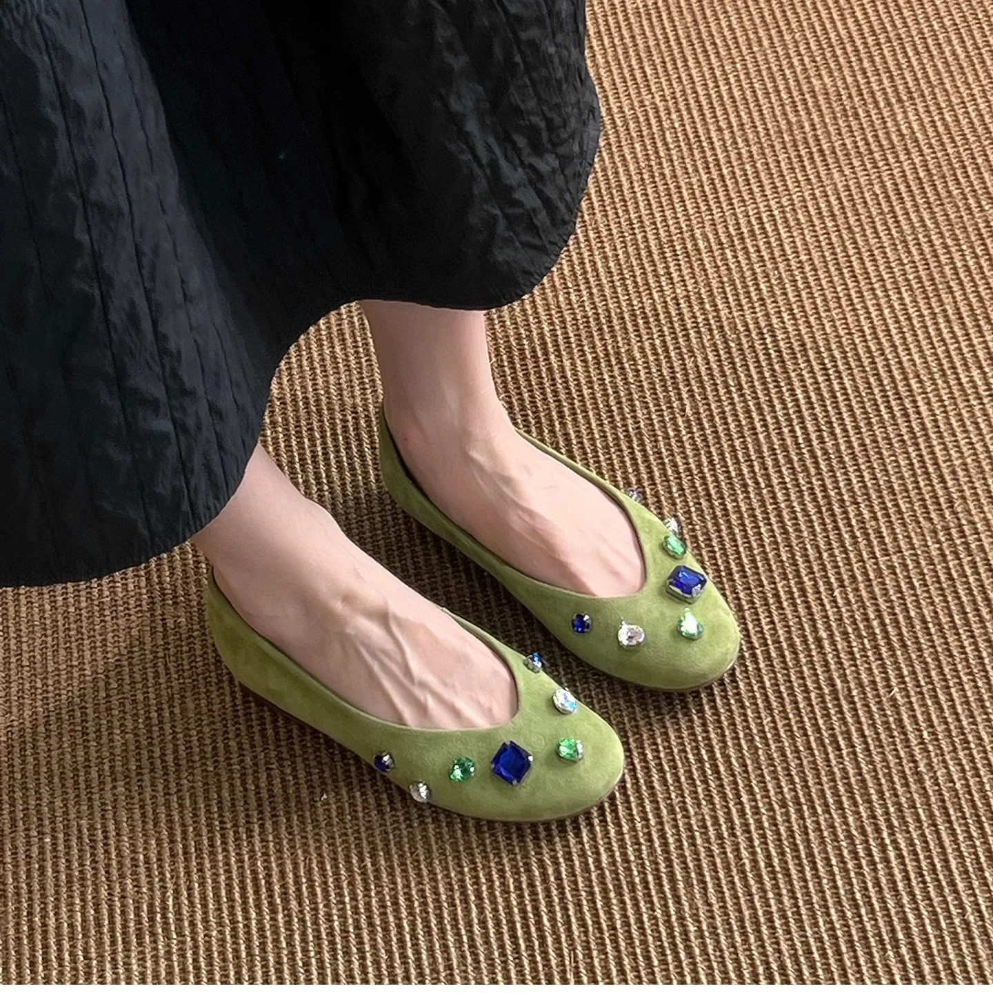 Luxury Colorful Gemstone Flats Women Comfortable Round Toe Shallow Suede Loafers for Ladies Elegant Brand Designer Casual Shoes