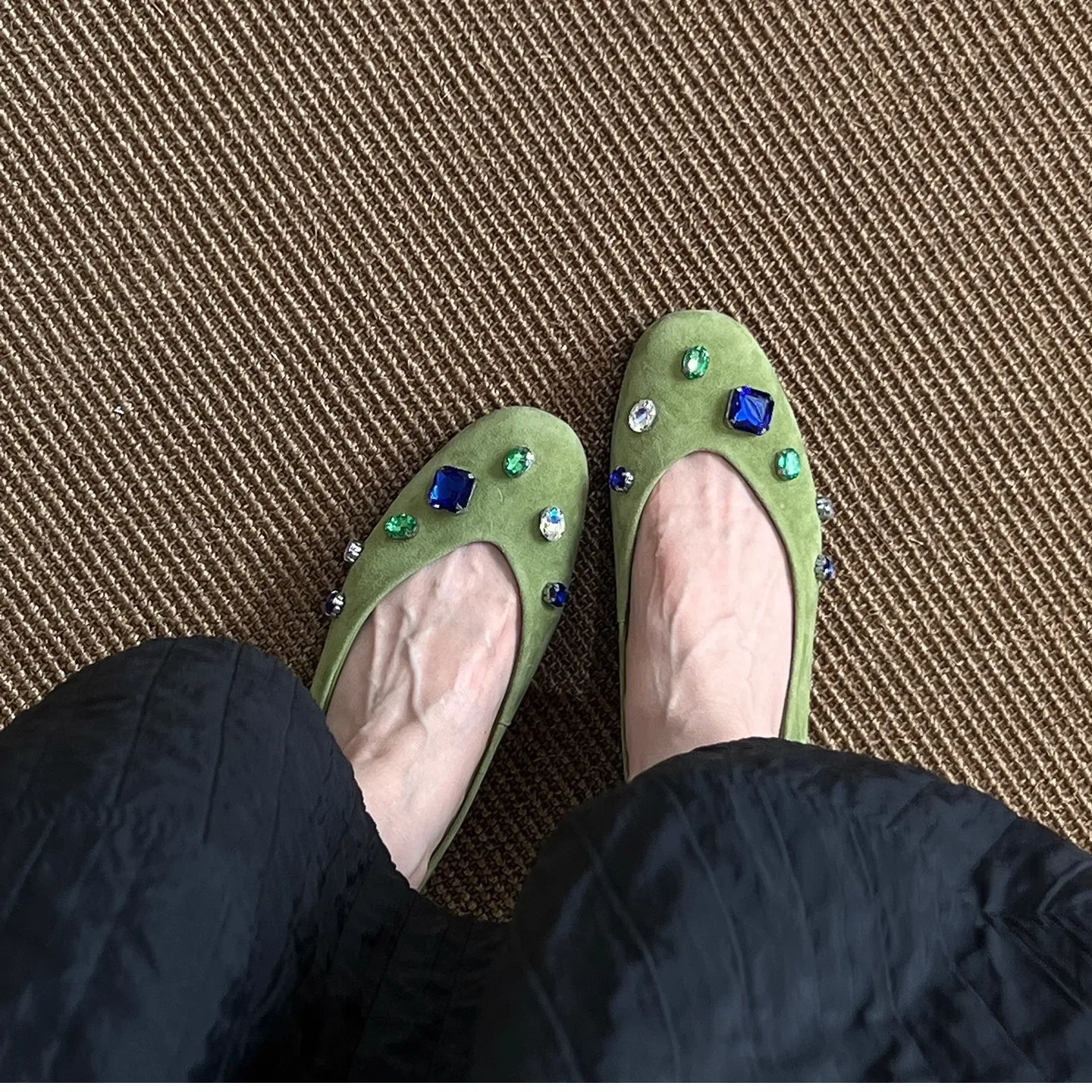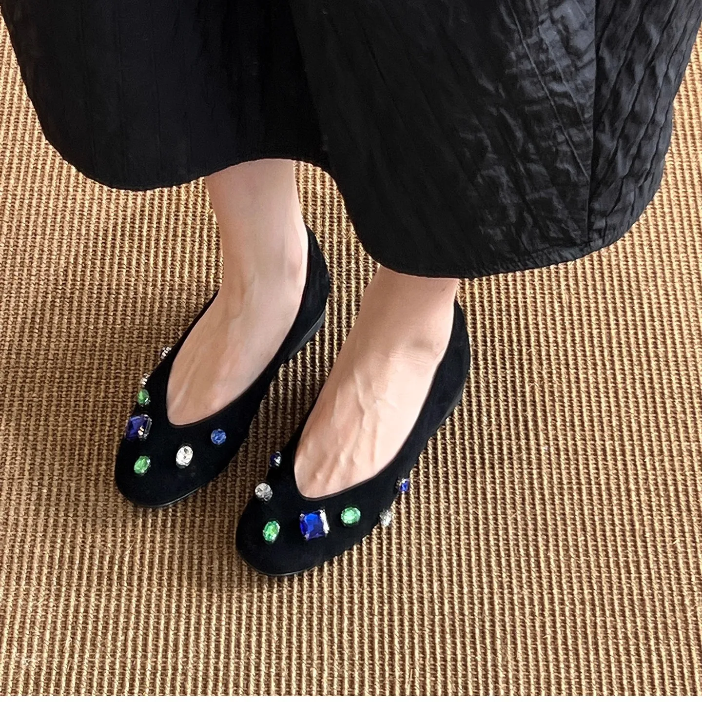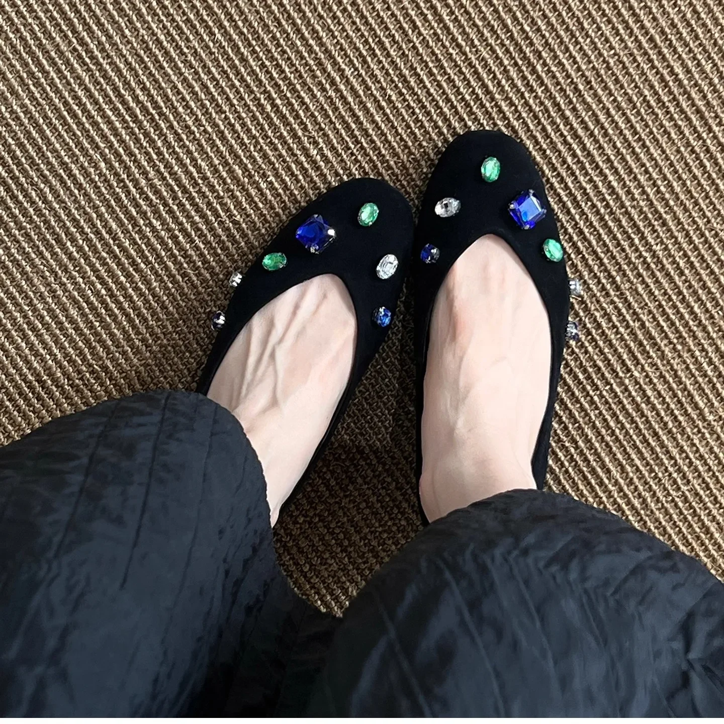 Luxury Colorful Gemstone Flats Women Comfortable Round Toe Shallow Suede Loafers for Ladies Elegant Brand Designer Casual Shoes