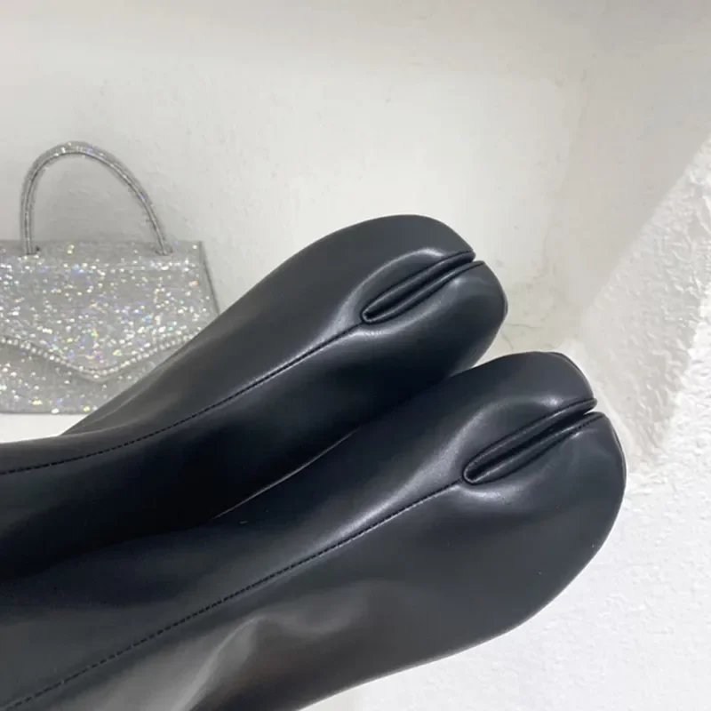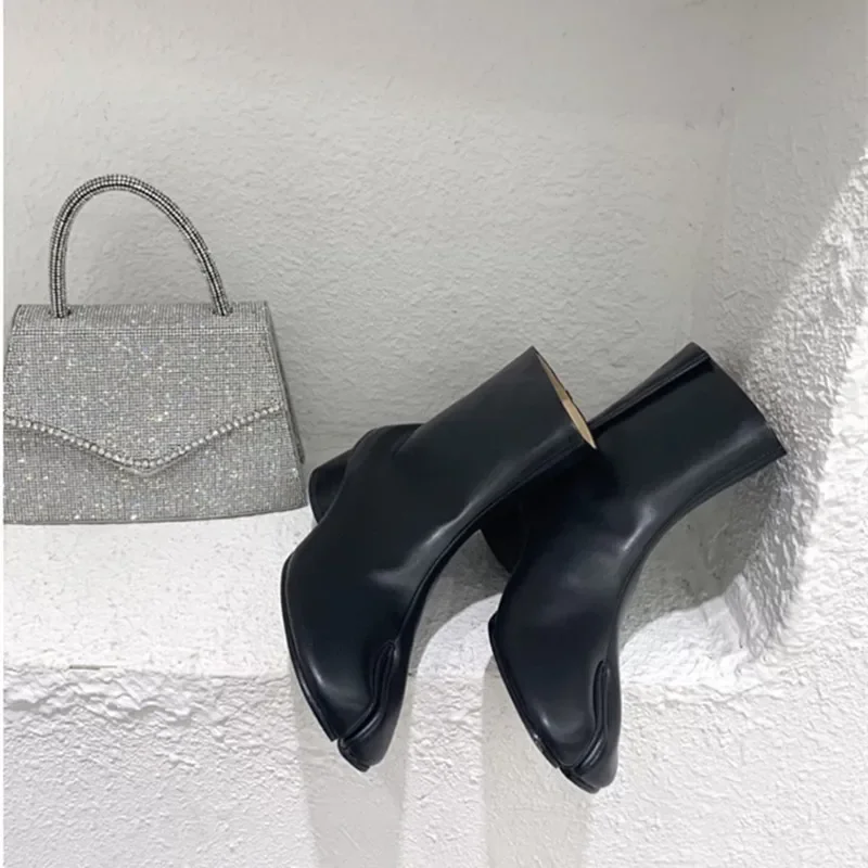 Luxury Design Fashion Split Toe Shoes 2025 Autumn Winter New Ankle Boots Genuine Leather Low Heels Women’s Boots