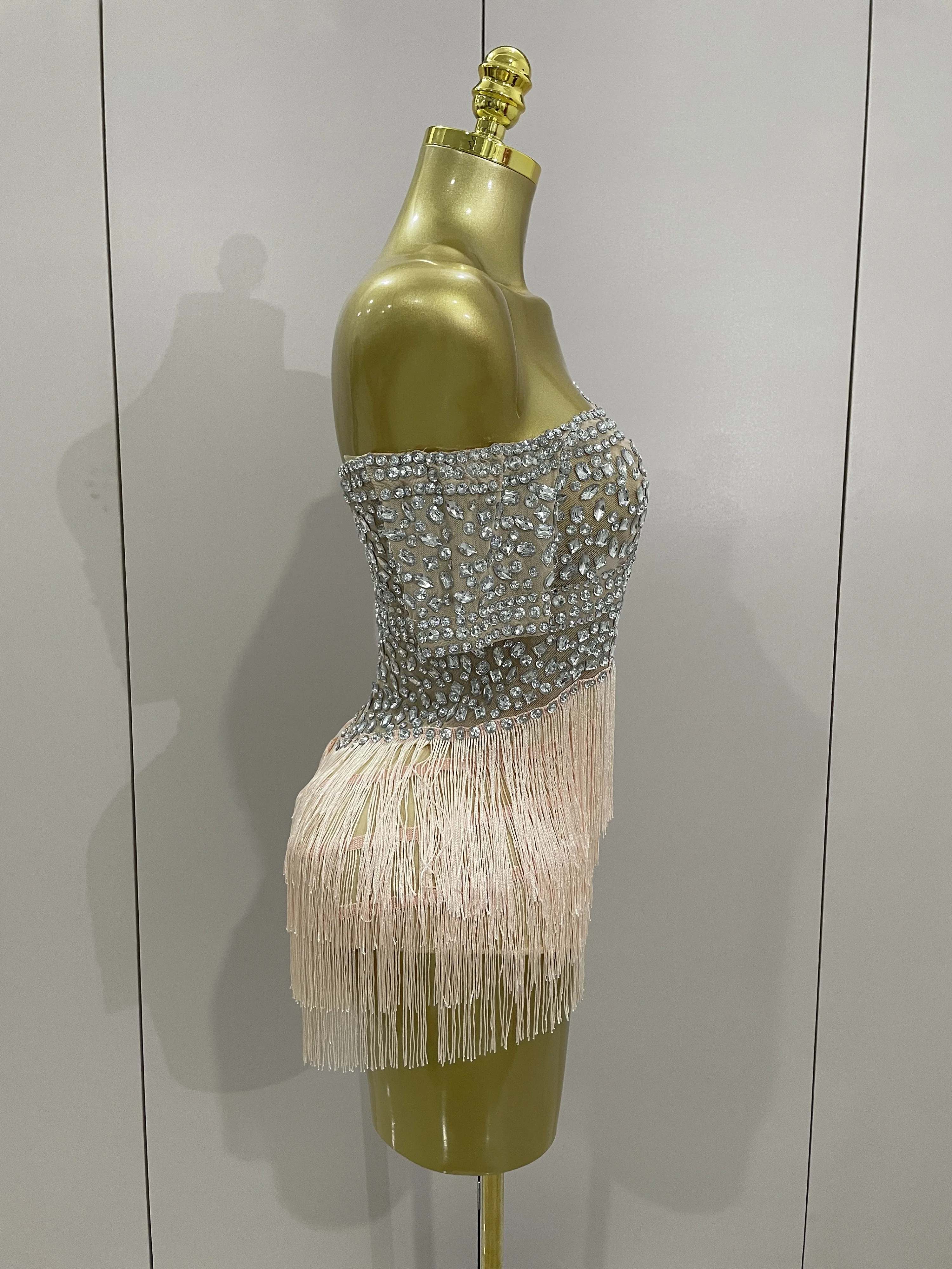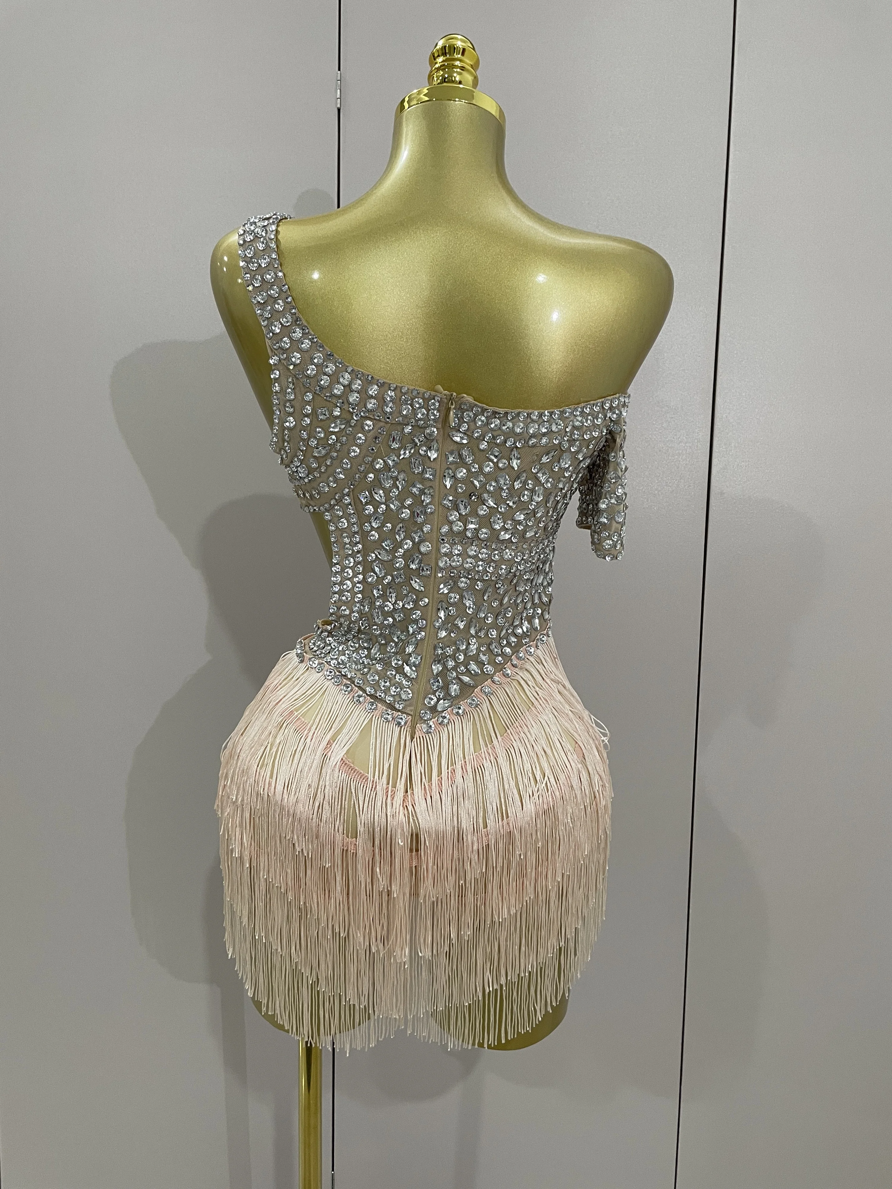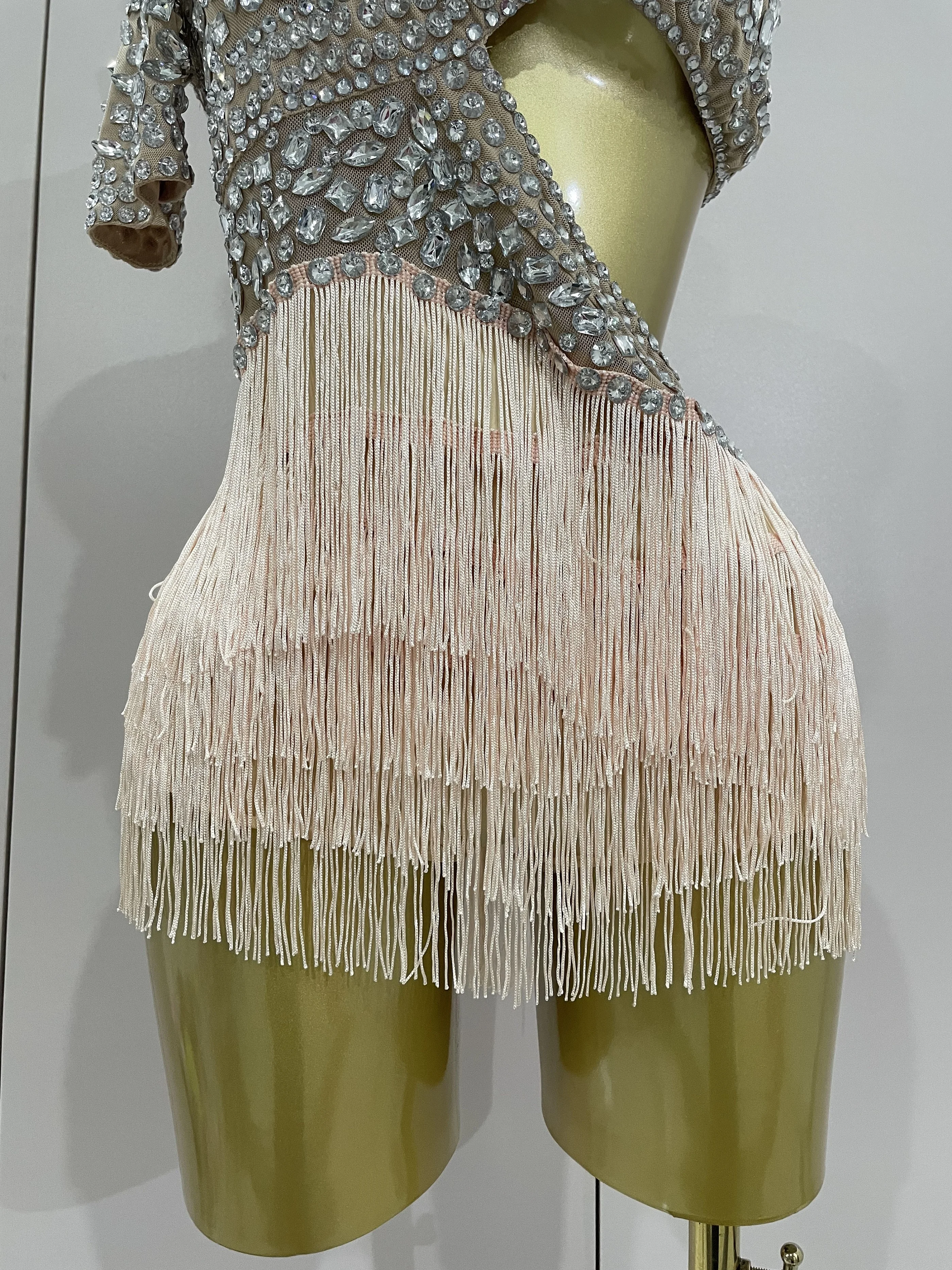 Luxury Sparkly Rhinestones Sexy Mesh Tassels Bodysuit Gloves Women Eveing Birthday Party Nightclub Performance Stage Costume