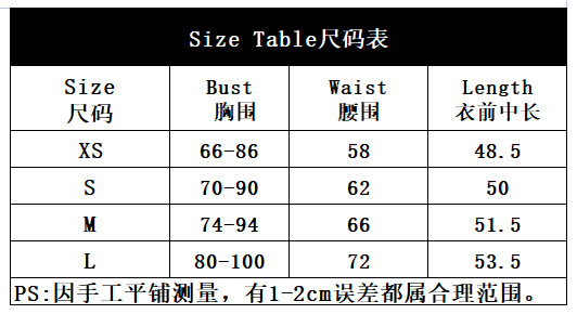 {"sizeInfoList":[{"length":{"cm":"66-86","inch":"25.98-33.86"},"size":"XS","vid":-1},{"length":{"cm":"70-90","inch":"27.56-35.43"},"size":"S","vid":-2},{"length":{"cm":"74-94","inch":"29.13-37.01"},"size":"M","vid":-3},{"length":{"cm":"80-100","inch":"31.50-39.37"},"size":"L","vid":-4}]} |