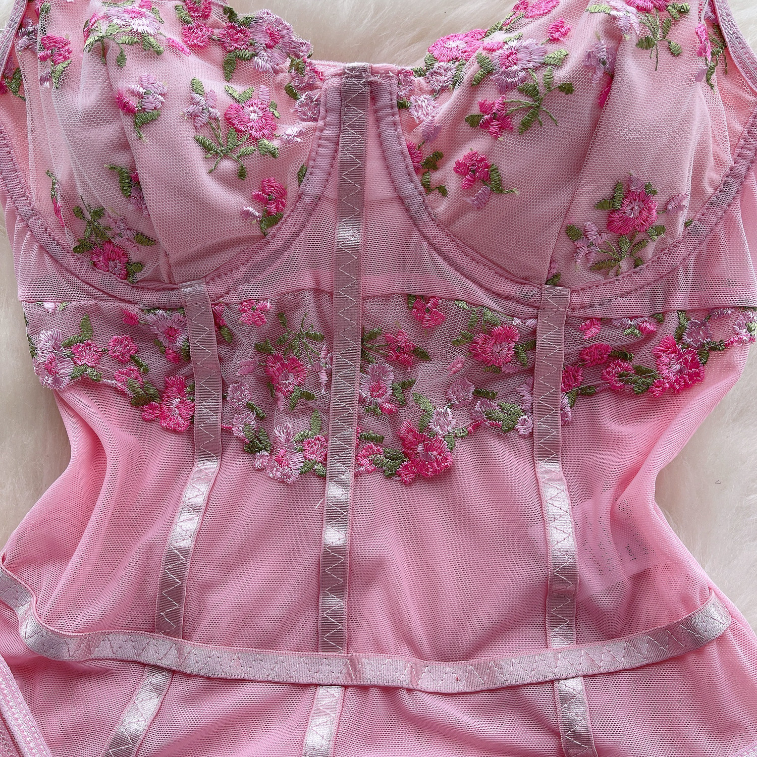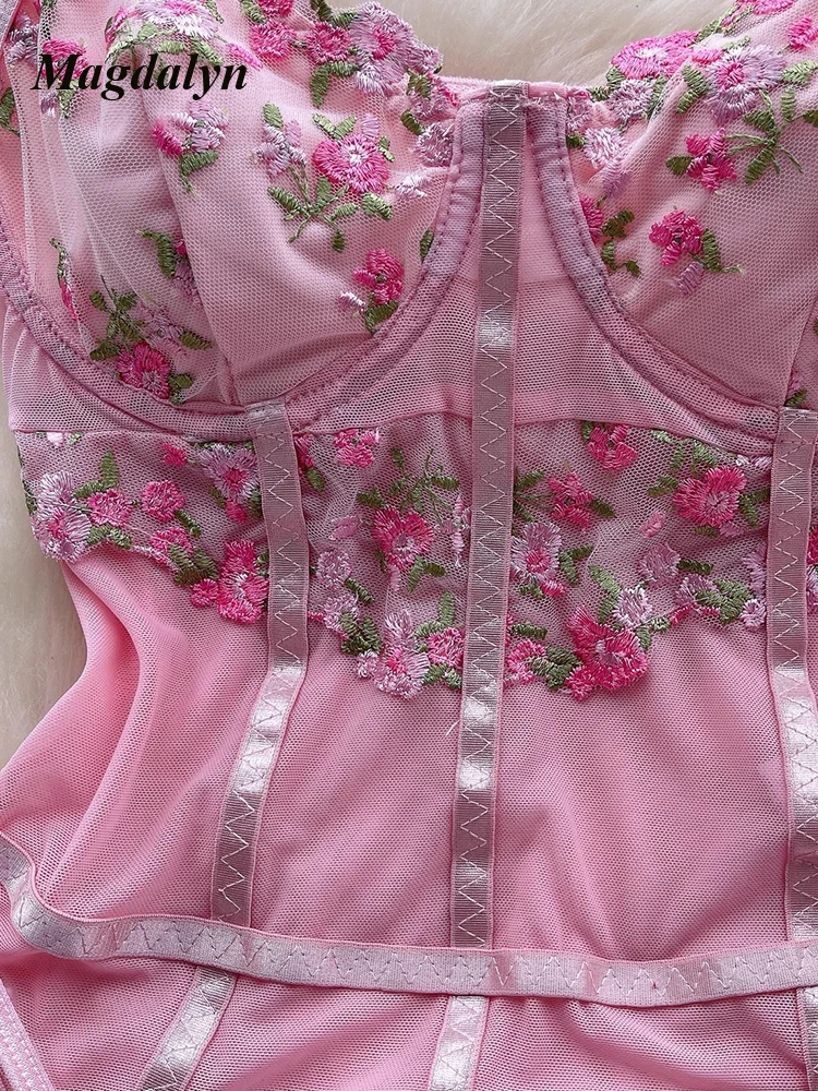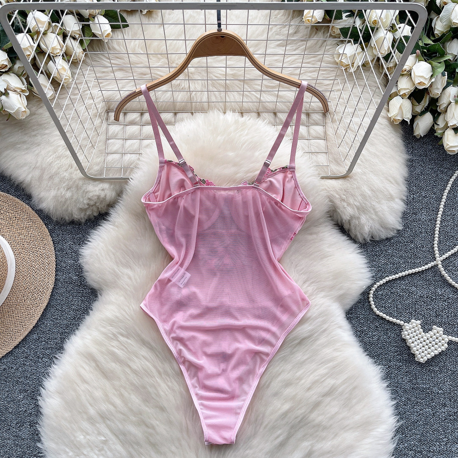 Magdalyn Women’s Clothing One Pieces Bodysuits Sexy Lingerie Sweet Flower Embroidery Rompers Sheer Combination Tight Jumpsuits
