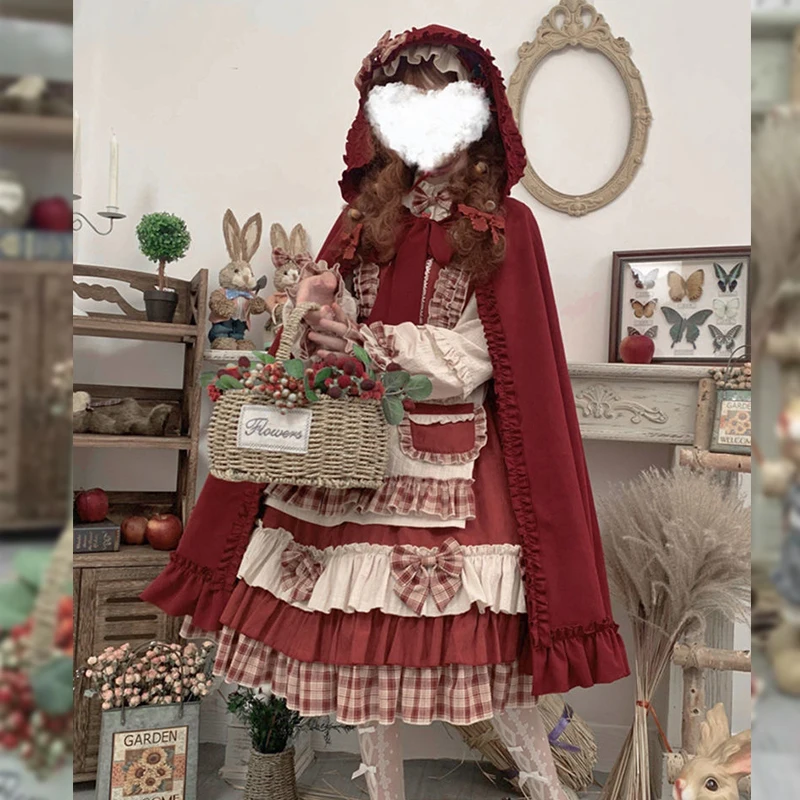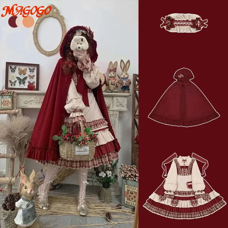 MAGOGO Christmas Lolita Dress Kawaii Costume Red Cloak Soft Sister Long Sleeve Party OP Victorian Dress Japanese Lolita Clothing