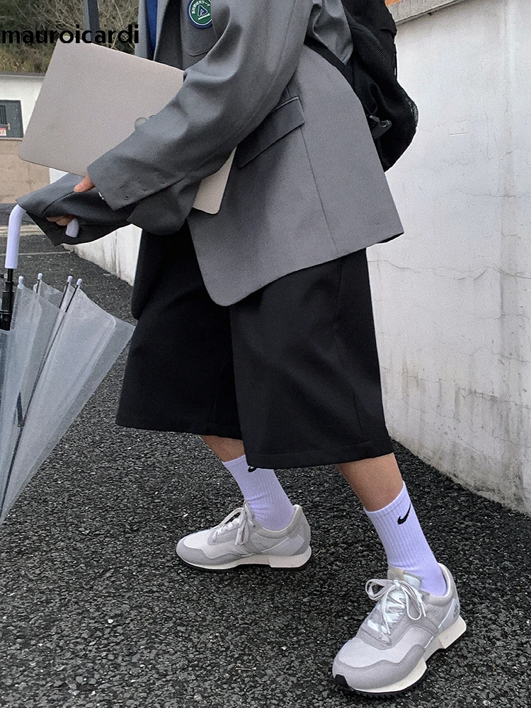 Mauroicardi Spring Summer Loose Casual Soft Black Pleated Shorts for Men Mens with High Waist Short Straight Pants Clothes 2024