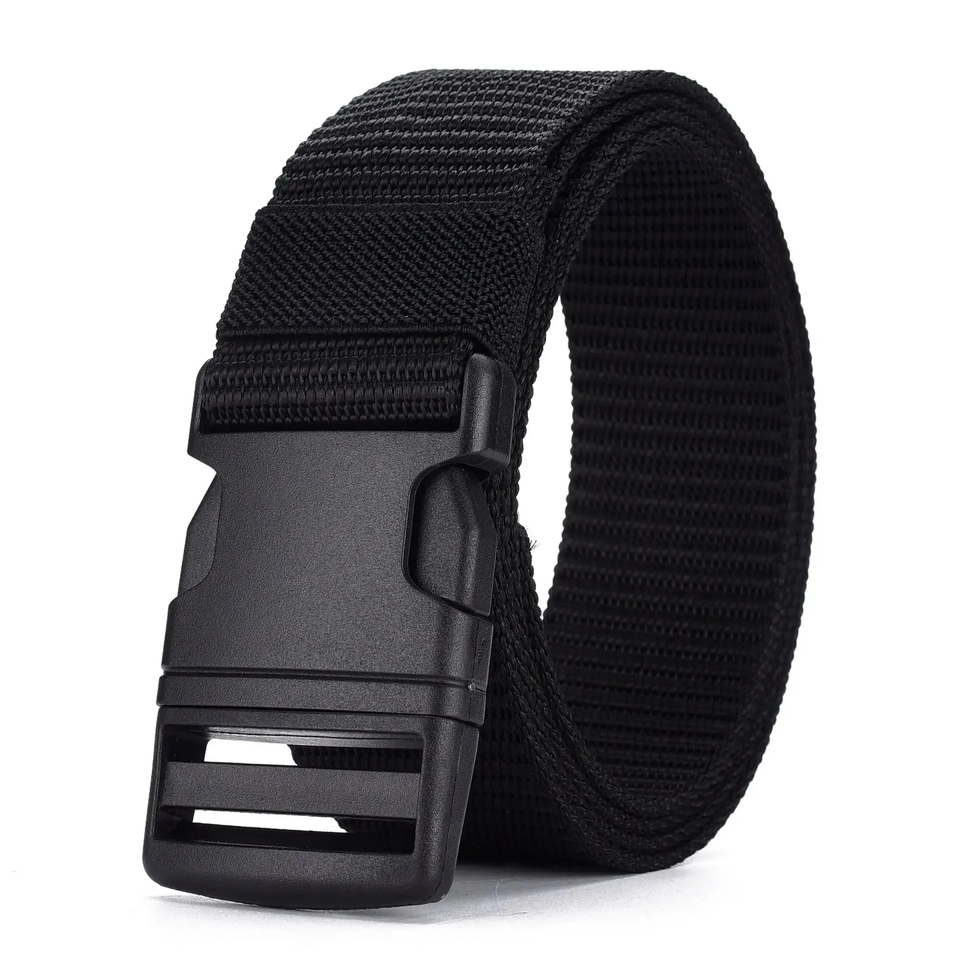 Men’s Outdoor Tactical Belt – No Metal Buckle (Plastic), Nylon Canvas Woven, Heavy Duty High Quality Webbing