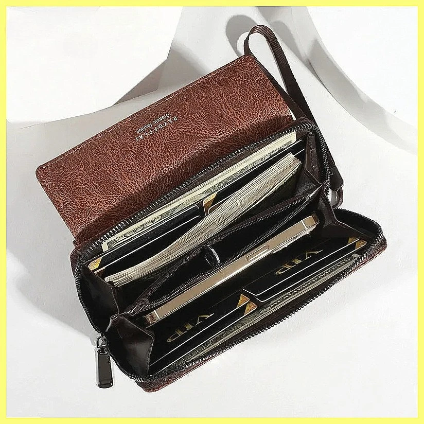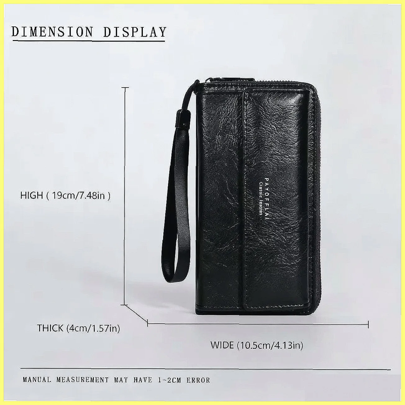 Men’s PU Zipper Handbag, Large Capacity Long Wallet with Card Holder & Coin Purse, Phone Clutch Bag