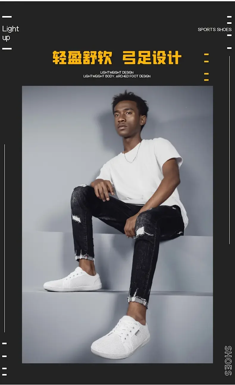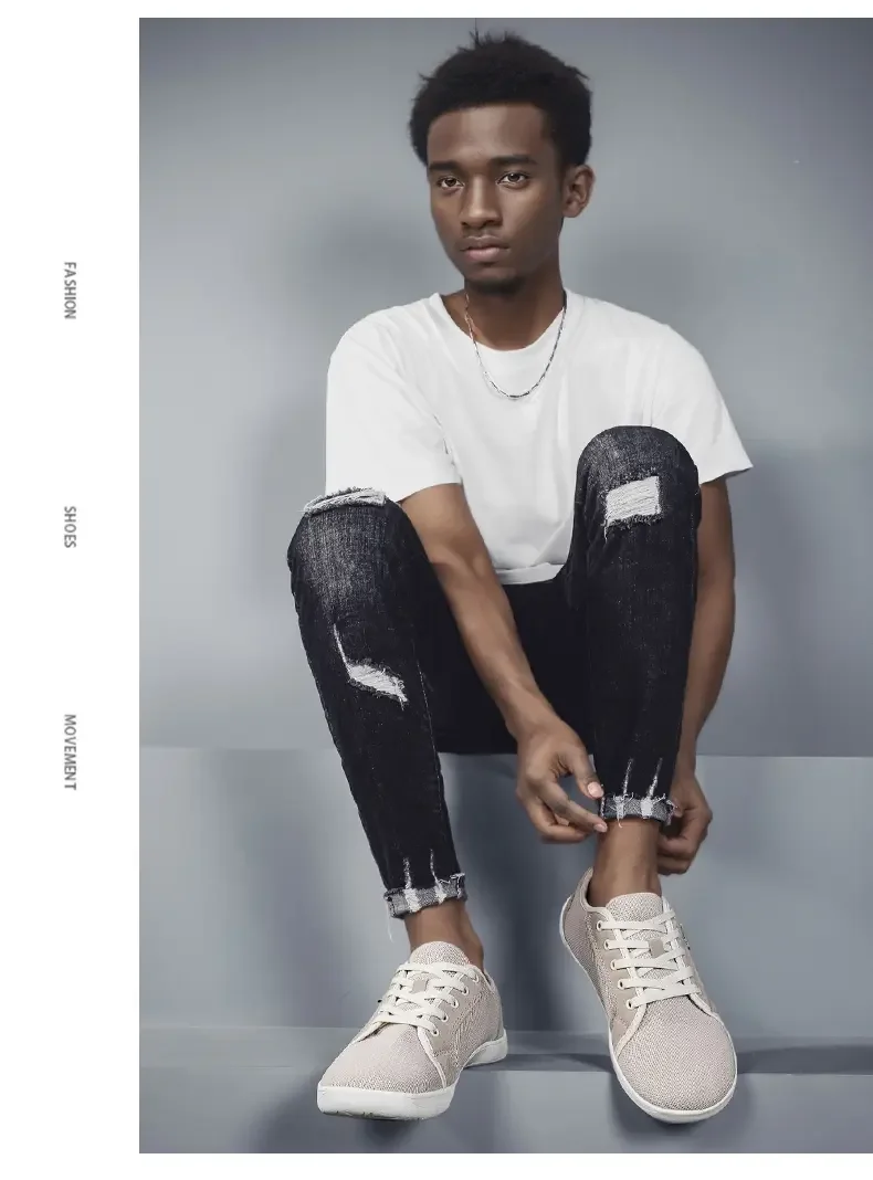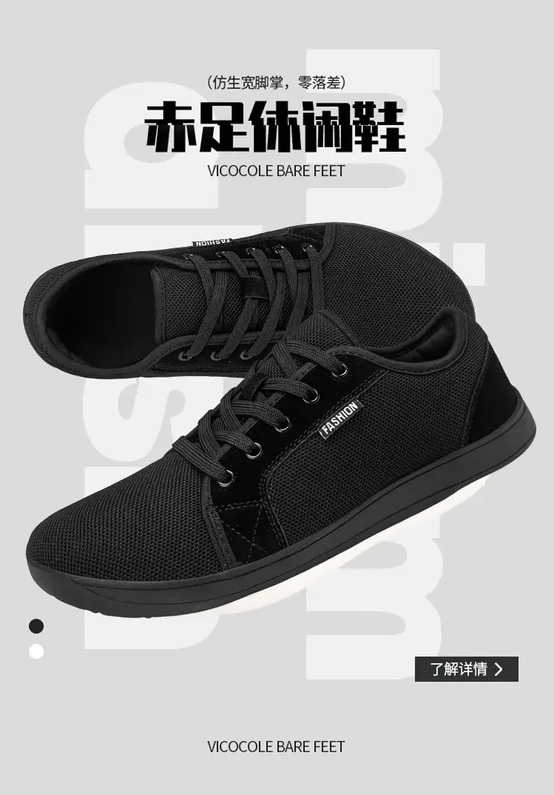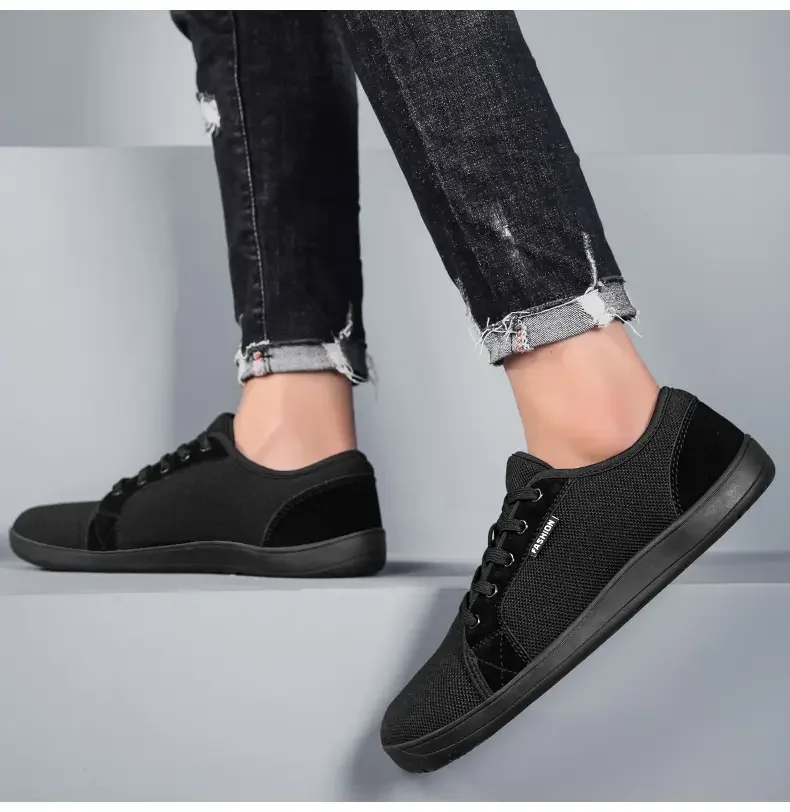 Men’s Shoes and Sports Shoes Wide Toe Barefoot Casual Plus Size Wide Last Fashionable Canvas Black Flat Bottomed Board Shoes