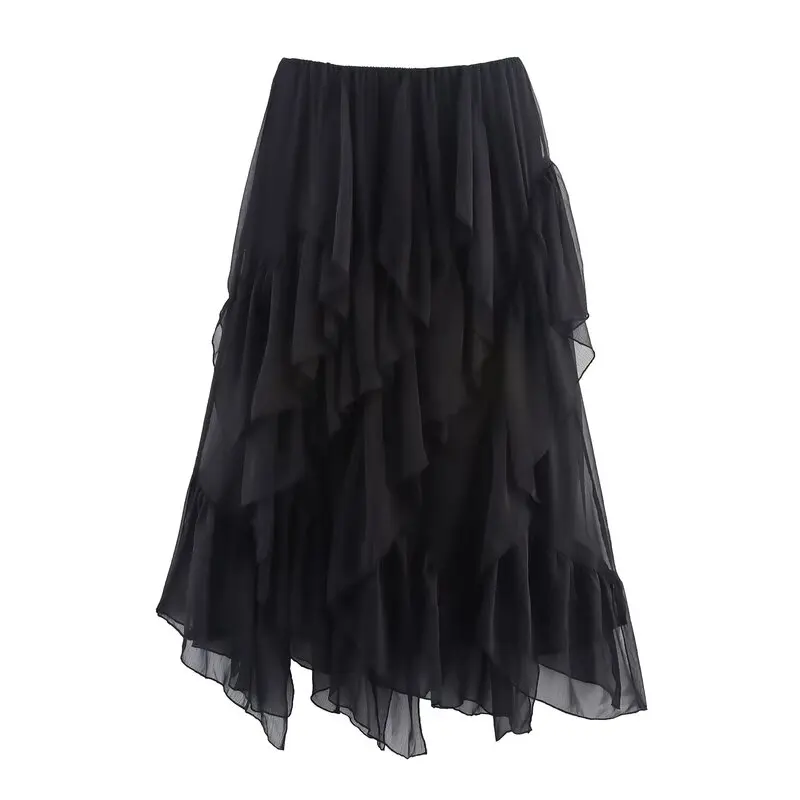 Midi Skirt Women’s Faion Design Layered Decoration mid Waist Spring Summer New Arrival Skirts Asymmetric Polyester Casual