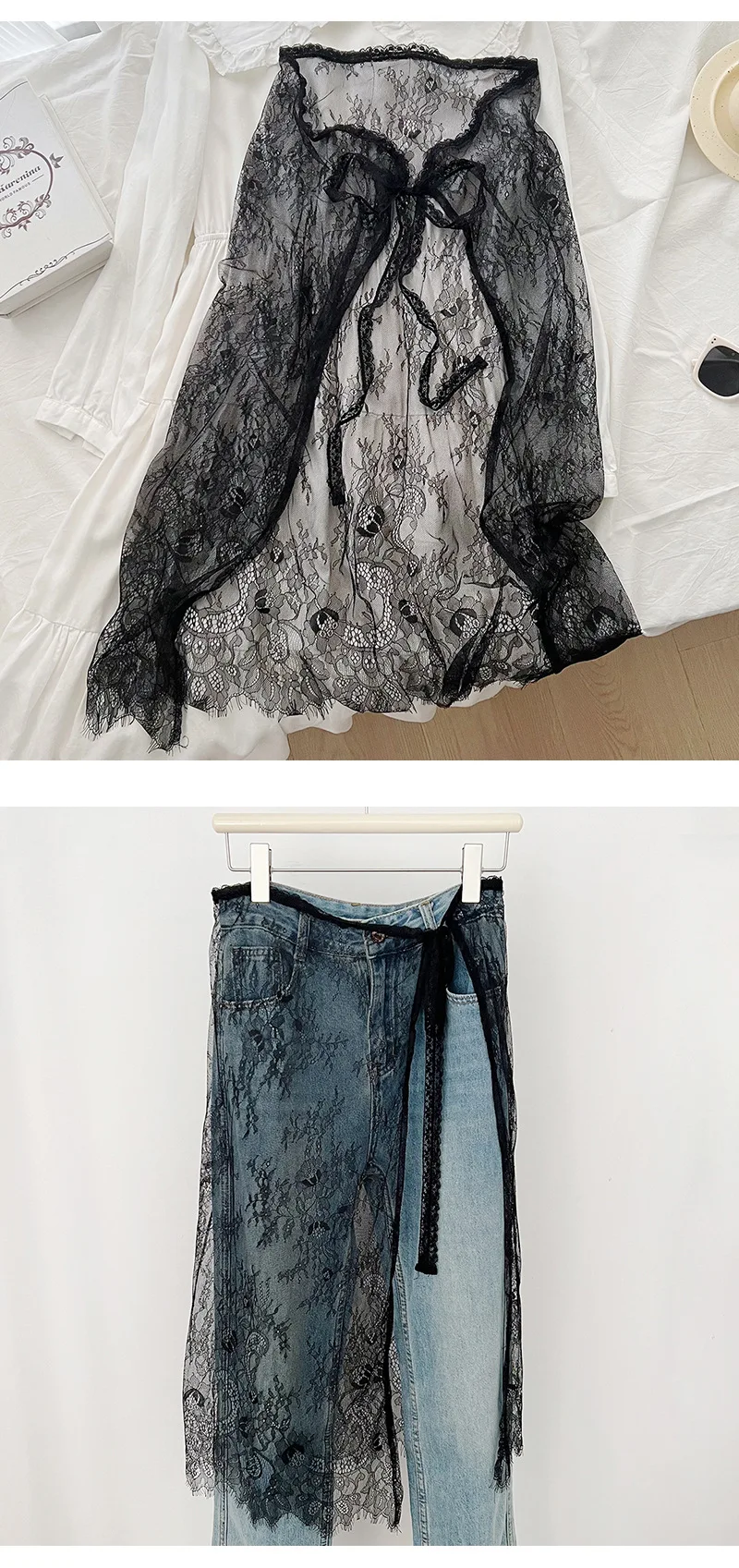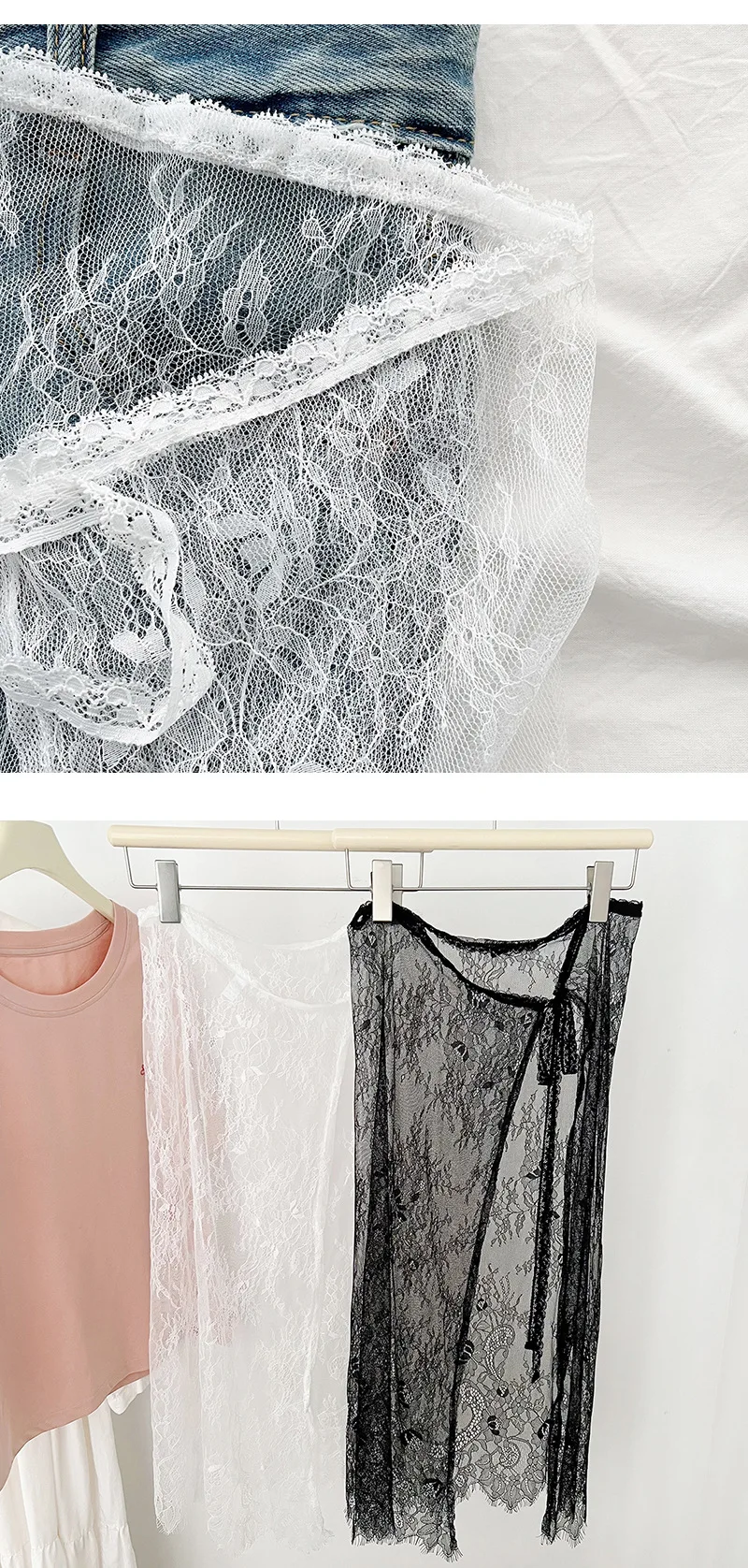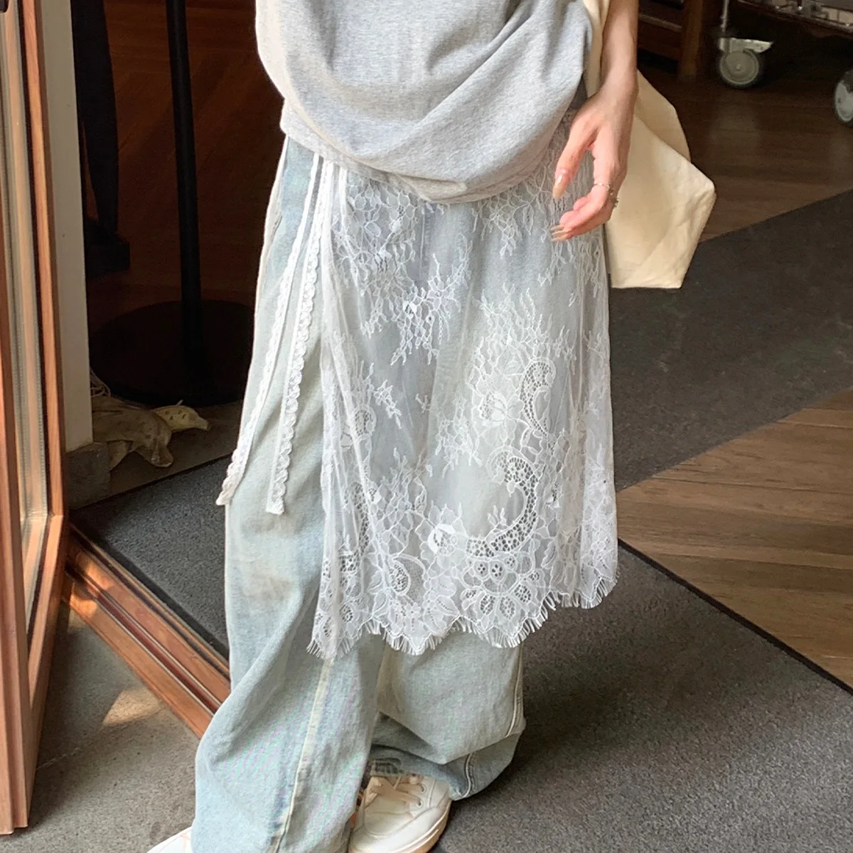 Midi Skirts Women Lace Drawstring Design Elegant Korean Style Spring Summer A-line High Waist Irregular Side Slit Fashion Street