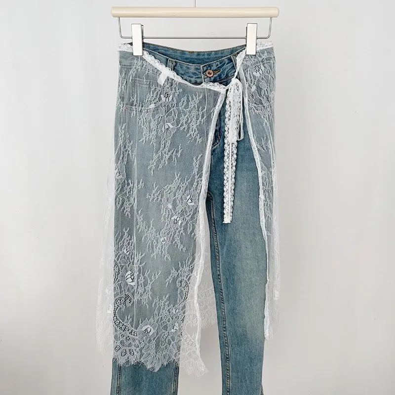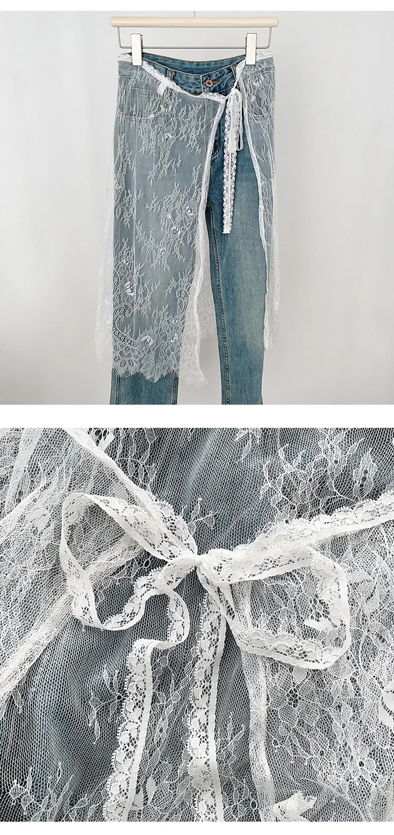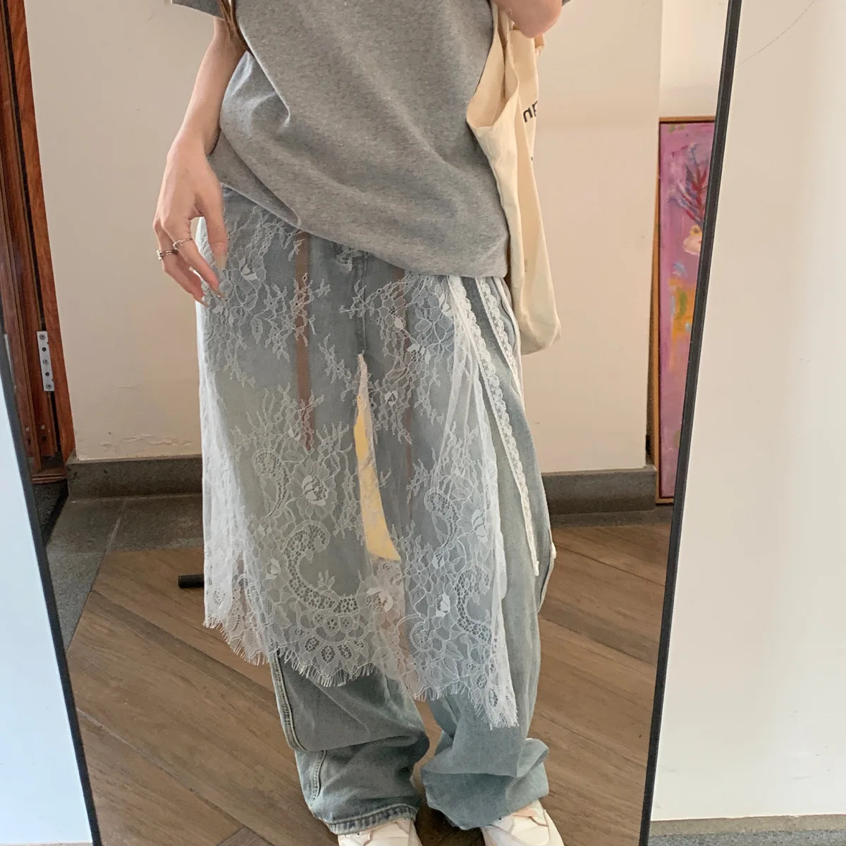 Midi Skirts Women Lace Drawstring Design Elegant Korean Style Spring Summer A-line High Waist Irregular Side Slit Fashion Street