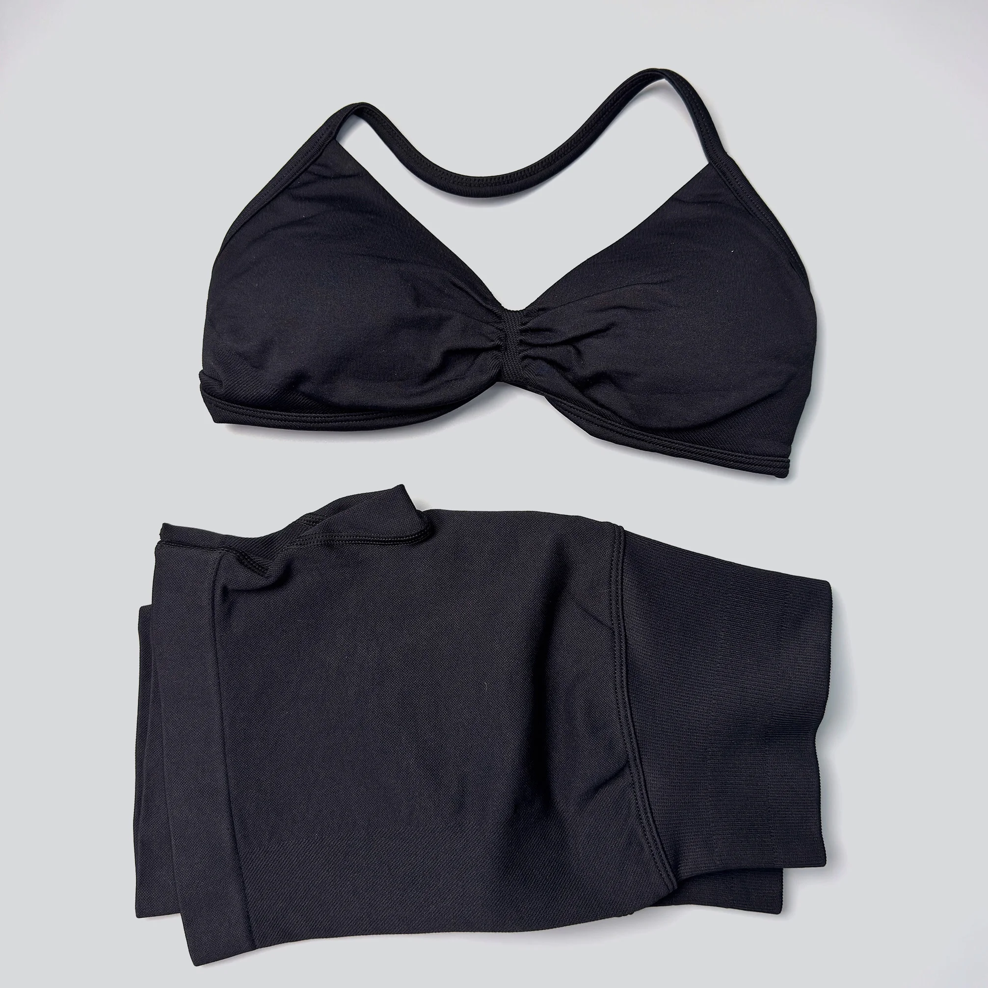 Mileegirl Seamless 2 Pcs Women Yoga Sets Halter Bras Sports Crop Tops Low Waist Scrunch Butt Gym Shorts Tight Quick Dry Leggings