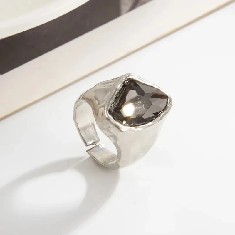 Minimalist Acrylic Rhinestone Open Ring for Women Korean Fashion Geometry Adjustable Knuckle Ring Party Jewelry Lady Gifts