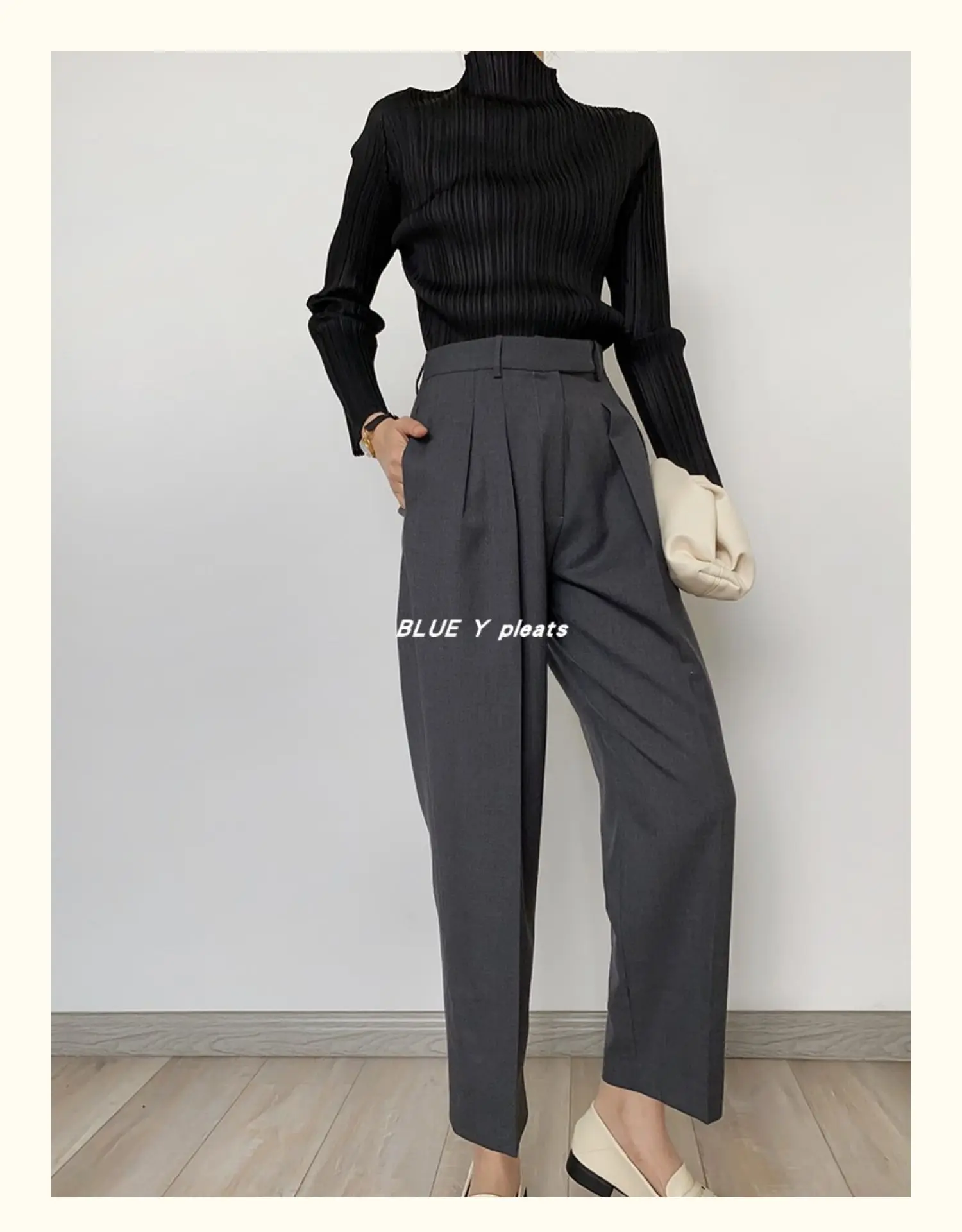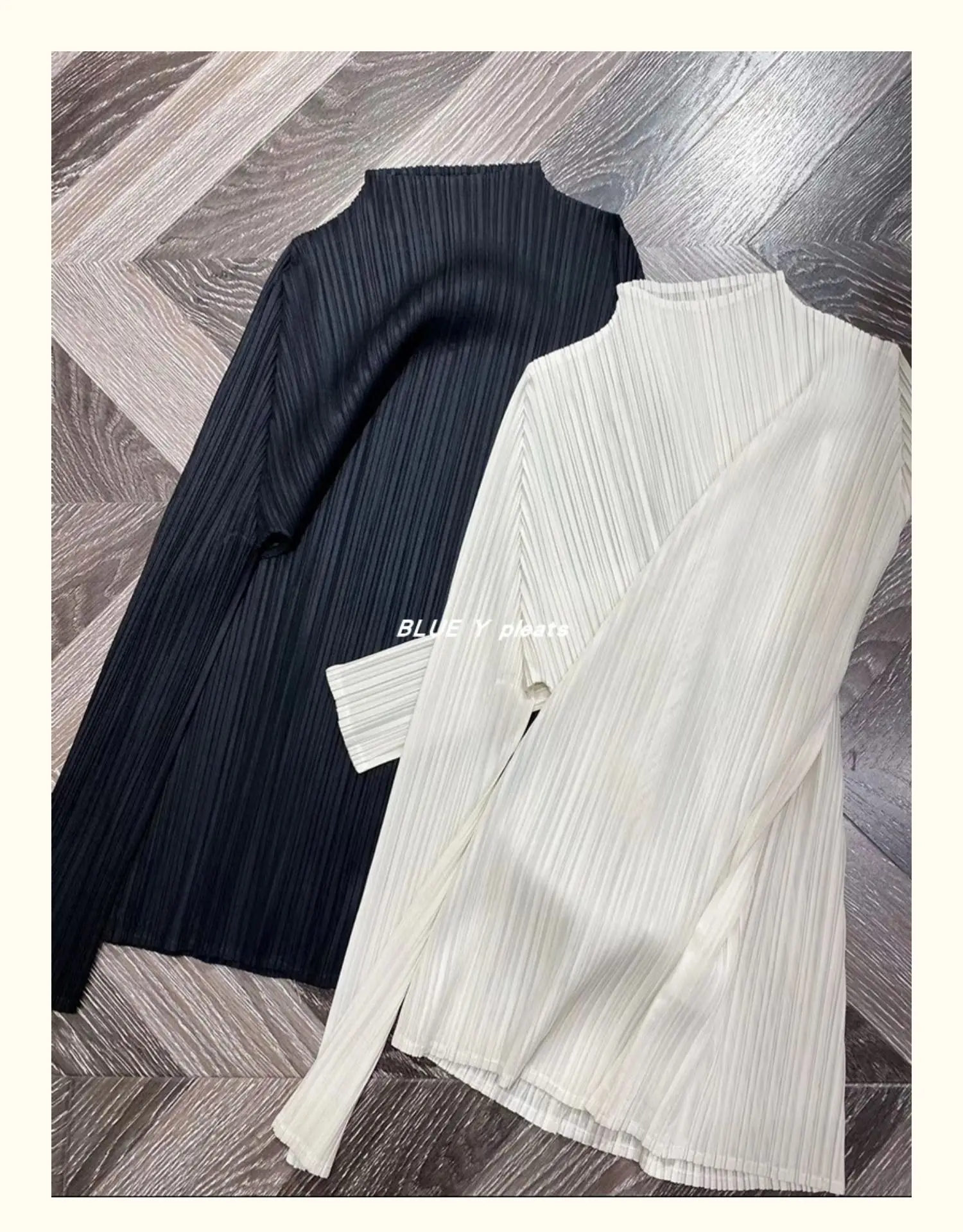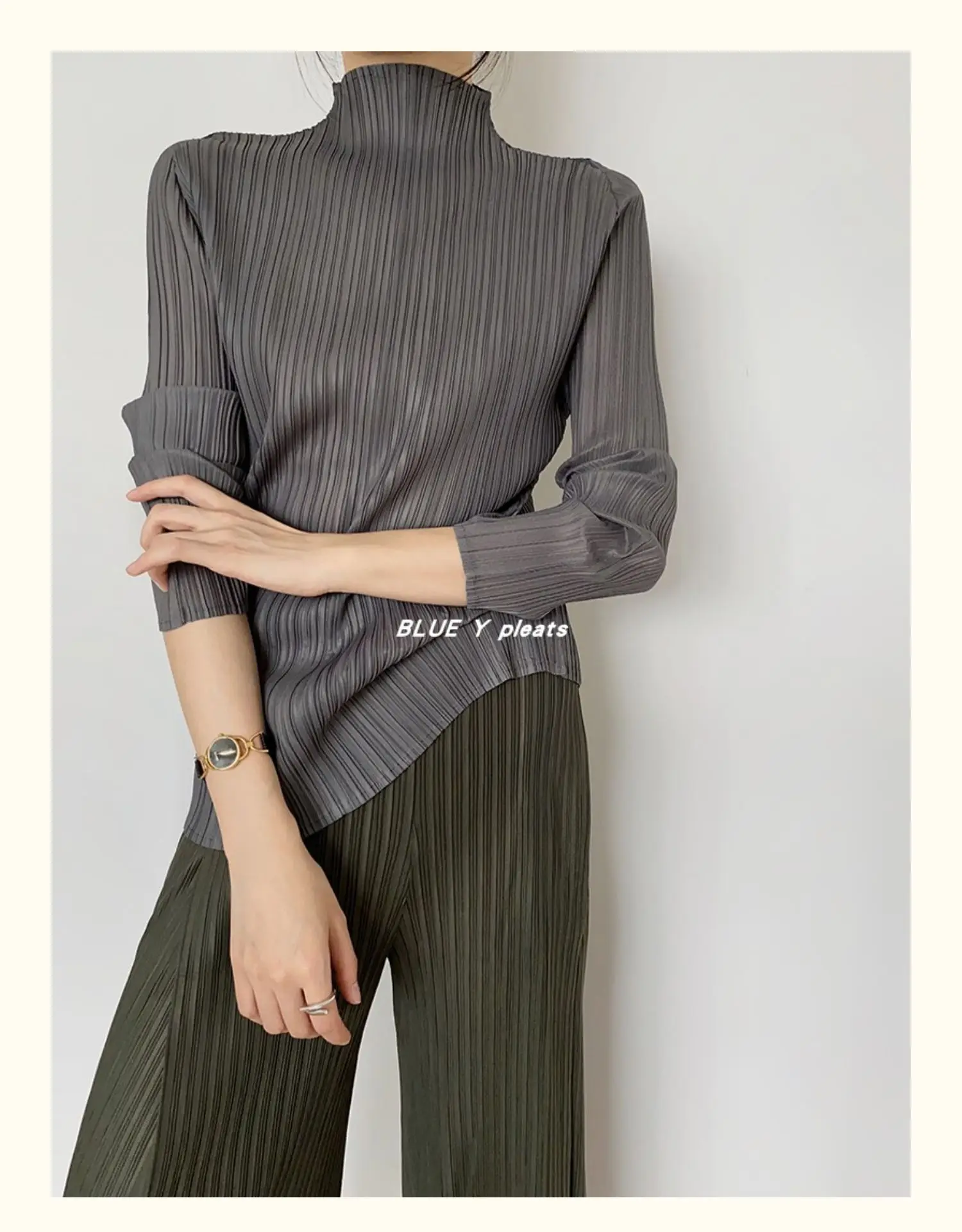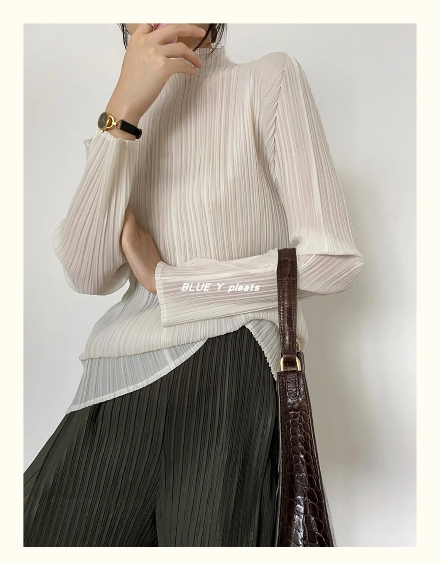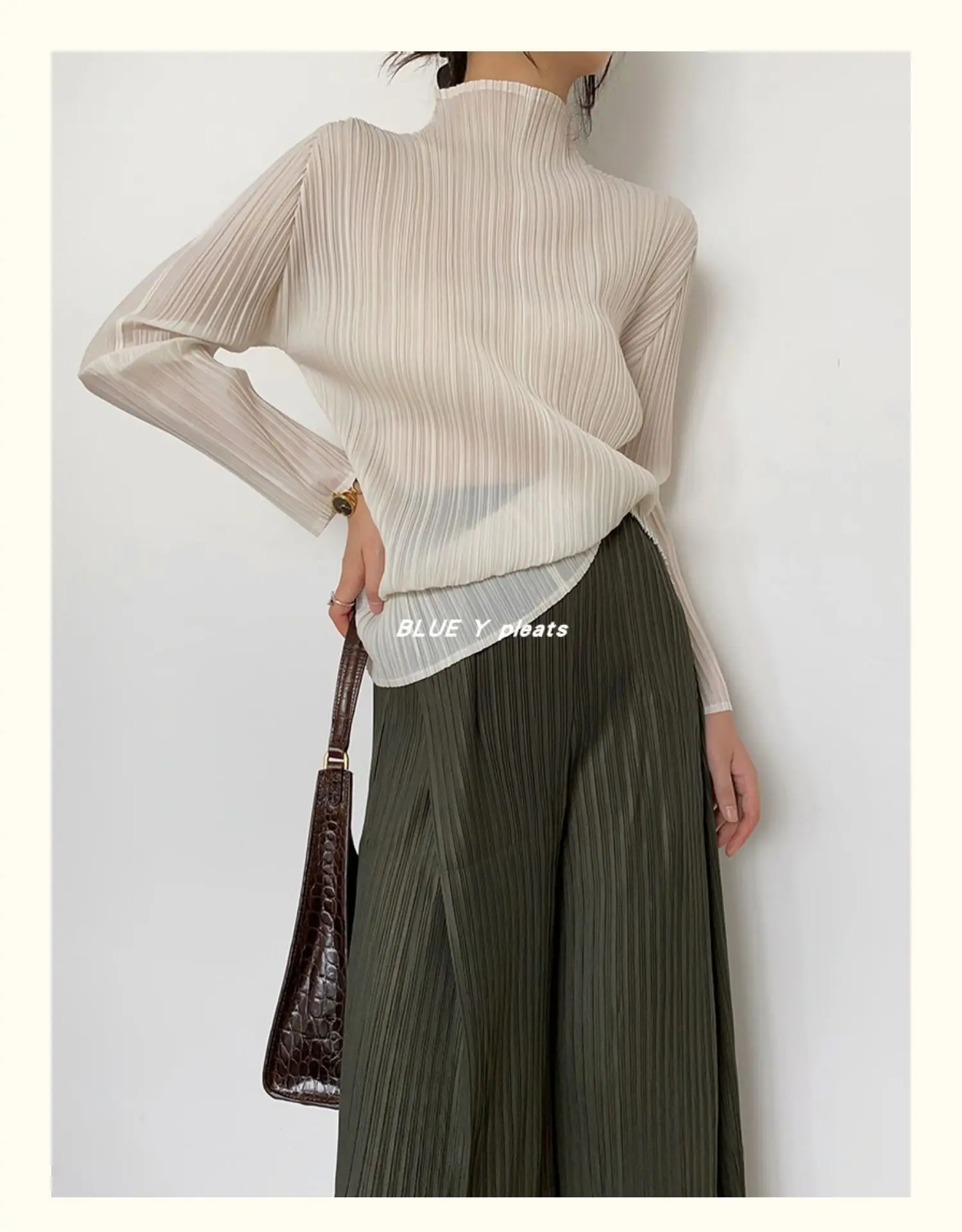 Miyake Pleated Women Shirt Tops High Fashion Designer New Aesthetic Clothing Comfortable Causal Long Sleeve Turtleneck T-shirt