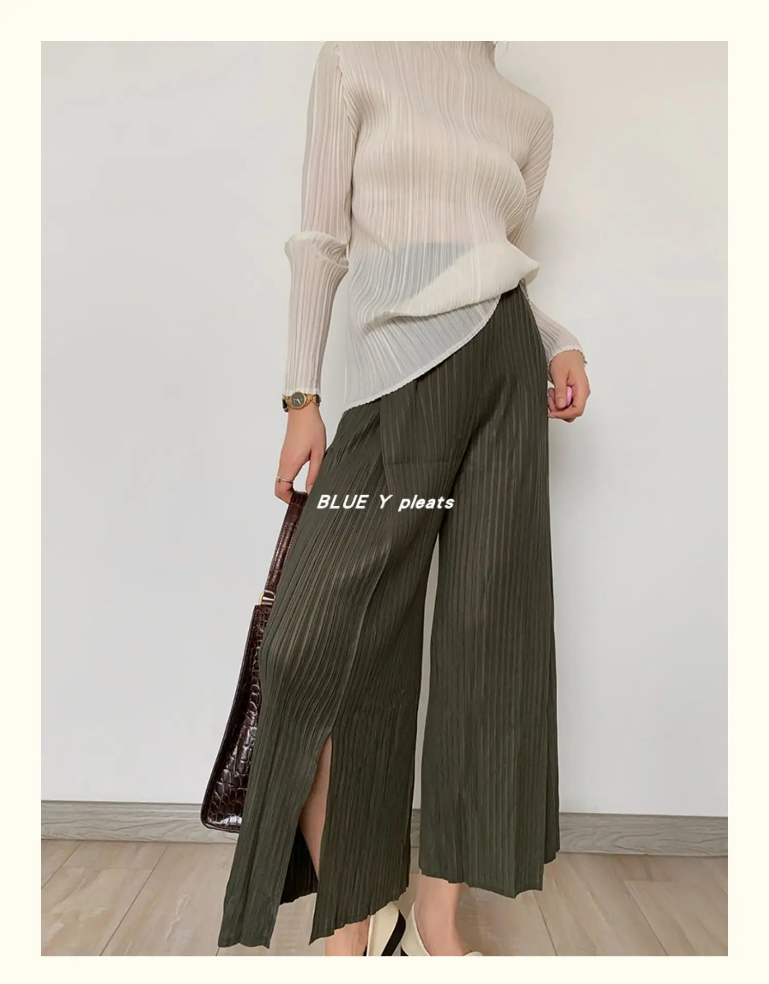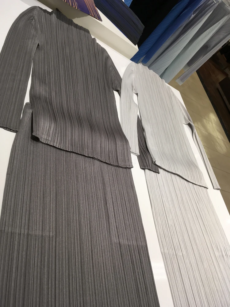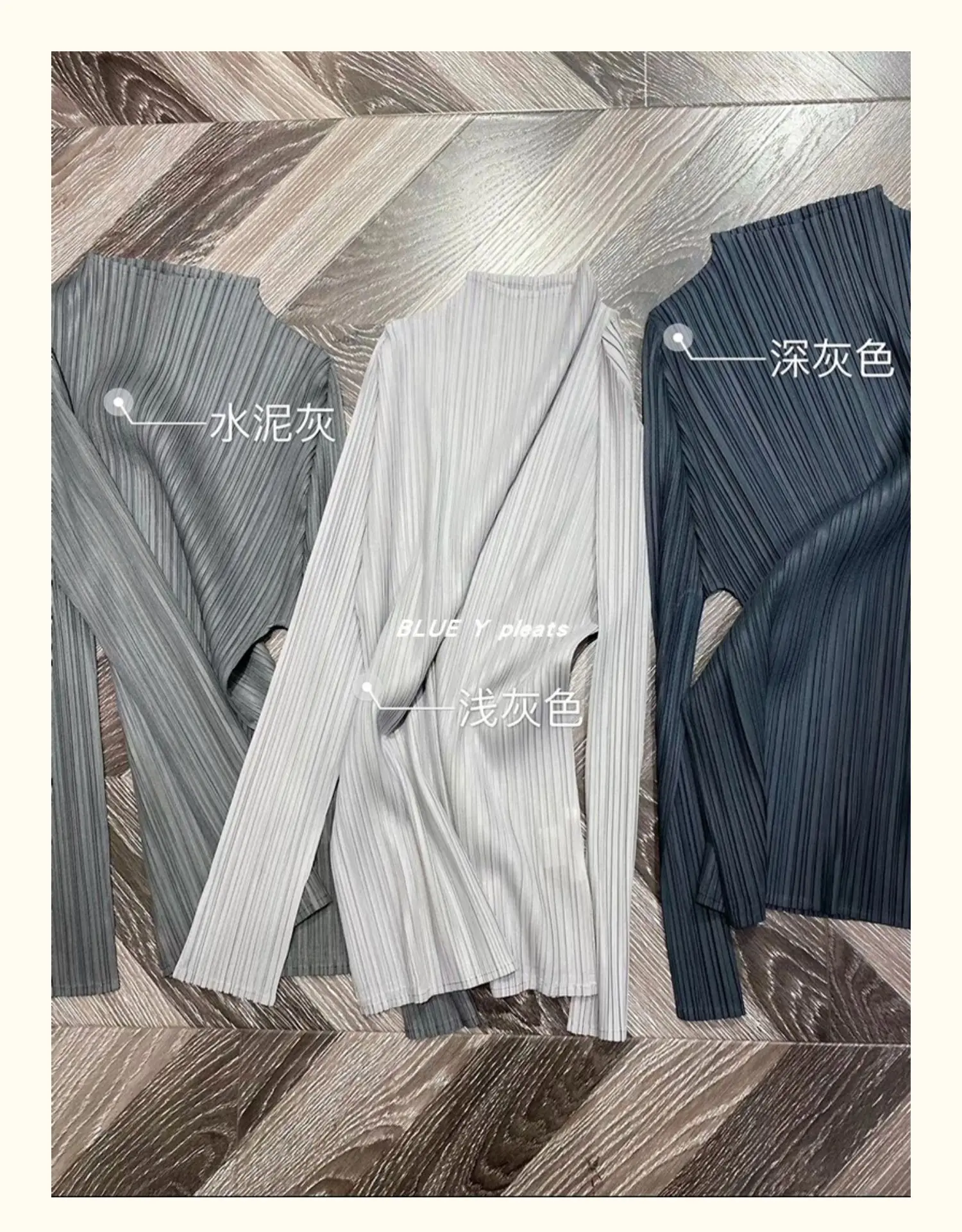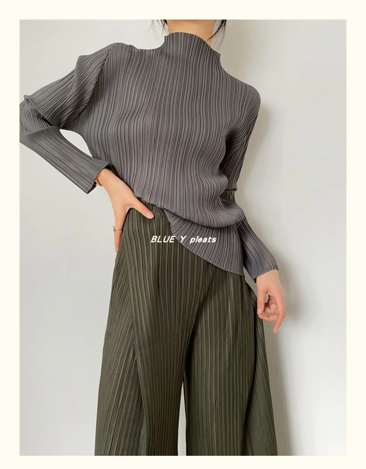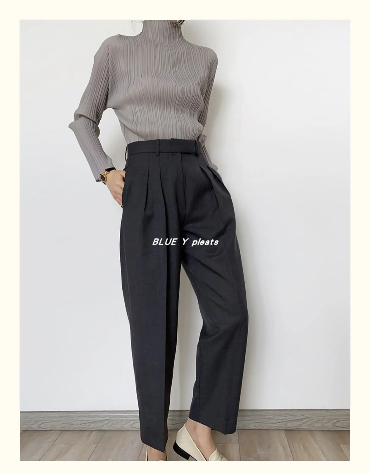 Miyake Pleated Women Shirt Tops High Fashion Designer New Aesthetic Clothing Comfortable Causal Long Sleeve Turtleneck T-shirt