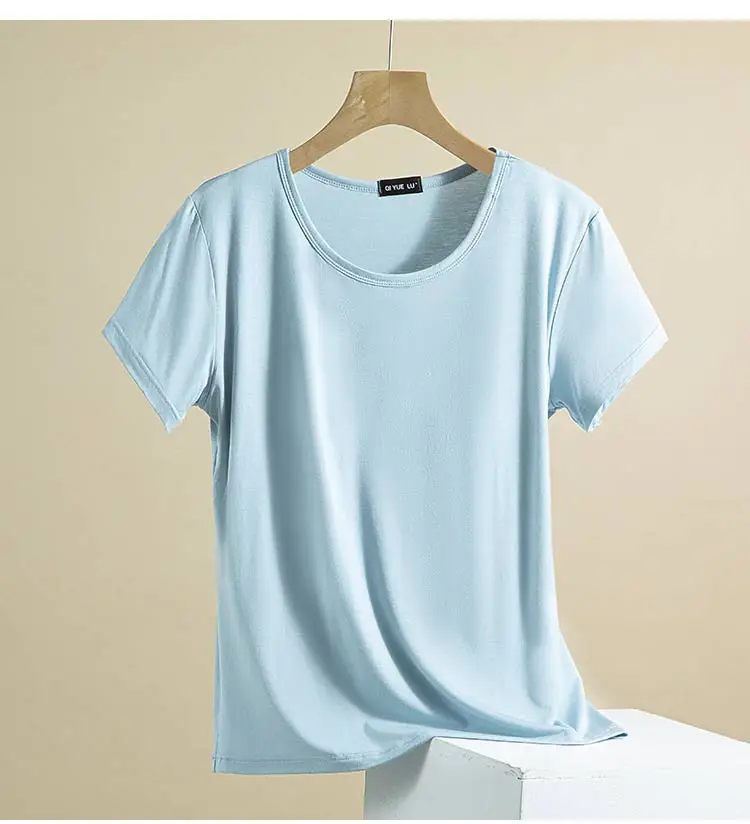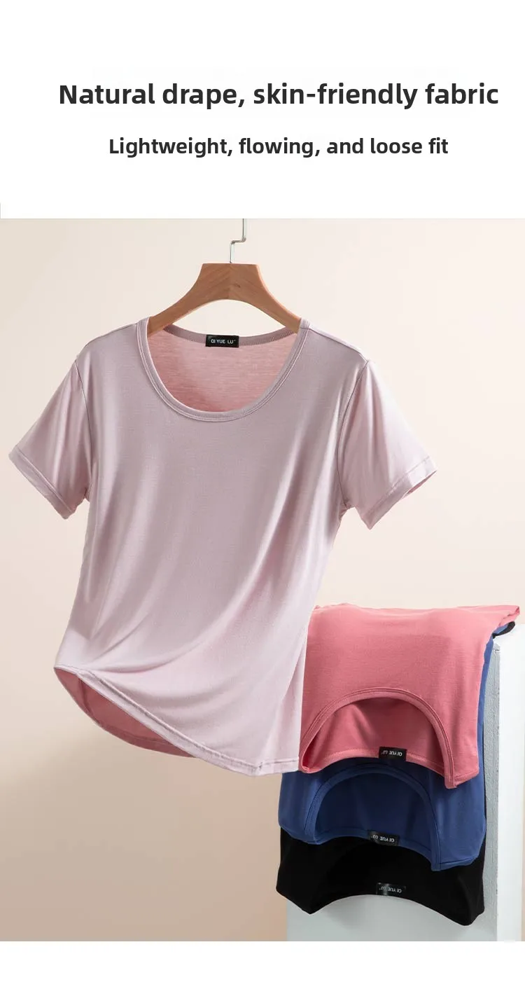 Modal Svel T-irt Women Summer Thin round Ne No Bra Casual Large Size Base irt Comfortable Breathable Loose Fit