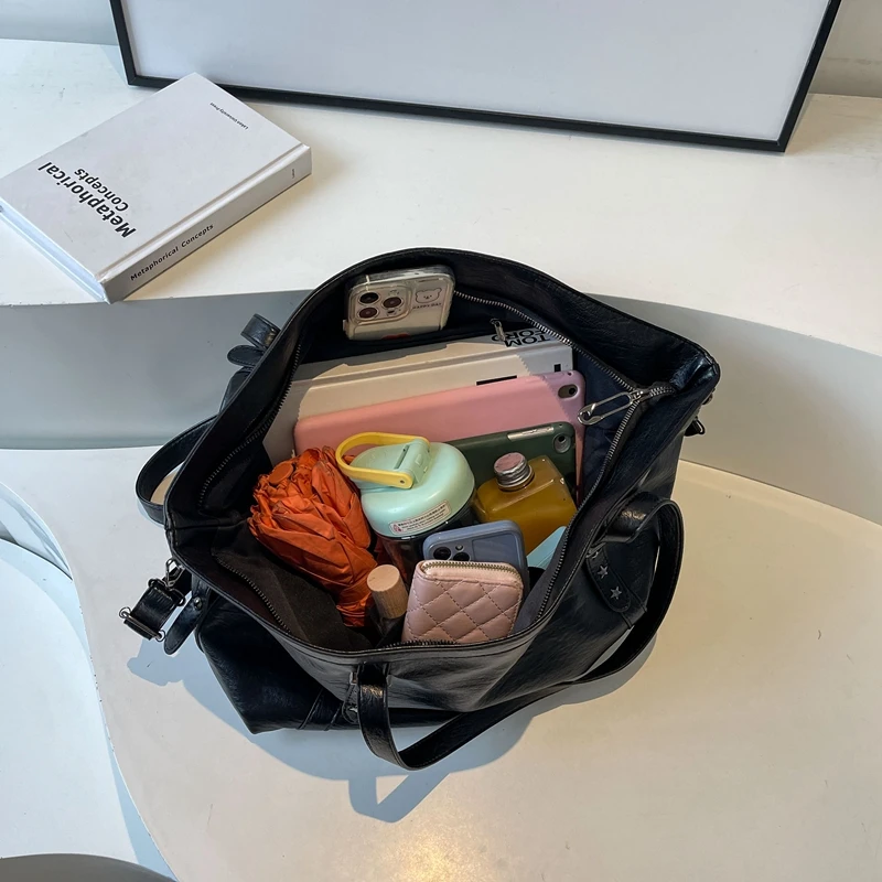 MOODS Large Sized Tote Bags For Women Soft PU Leather Pure Color Large Capacity Shopper Shoulder Crossbody Bag Quality Handbags