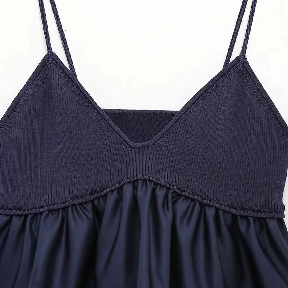 MUJER Blue Crop Top Women Ruffle Knitted Camis Top Woman Off Shoulder Corset Top Female Streetwear Backless Women’s tube top