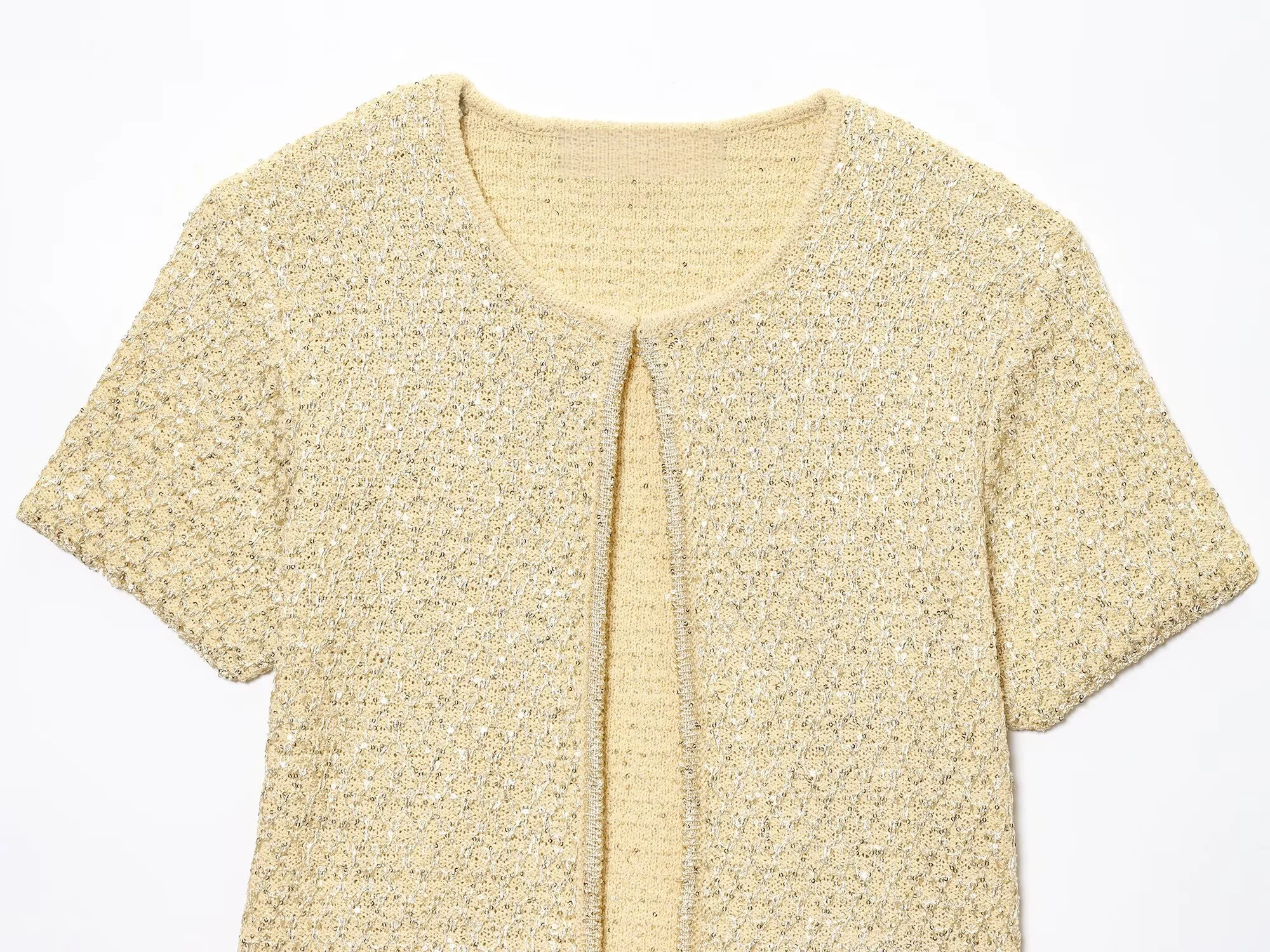 MYST&ZA2025 Summer New Product Temperament Elegant Sequin Knitted Jacket + Sequin Knitted Suspender Top Set