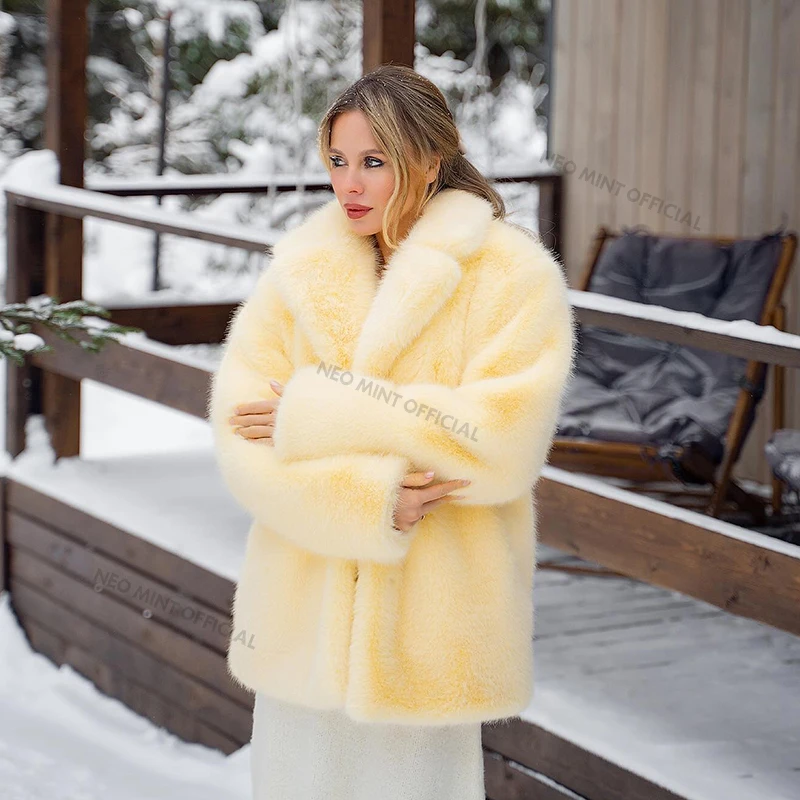 Neo Mint Women Winter 2024 High Quality Luxury Faux Fur Coat Thicken Warm Overcoat Outerwear Hot Girls Solid Long Fox Fur Jacket