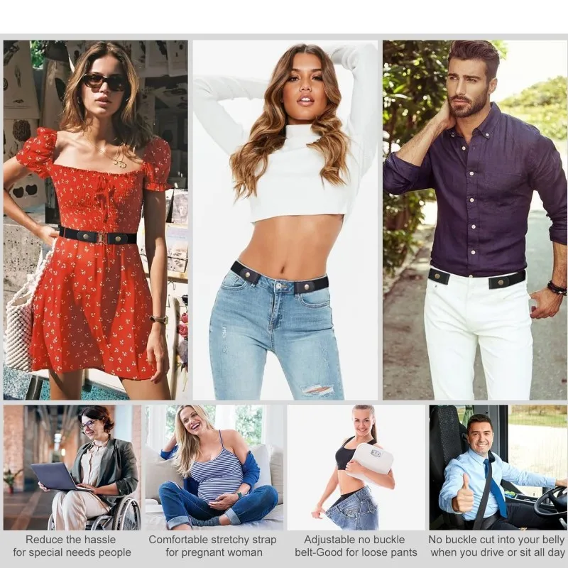 New Adjustable Belts Women Buckle-Free Waist Jeans Pants Stretch Elastic Waist Men Canvas Belt Lazy Invisible Seamless Belt 2025