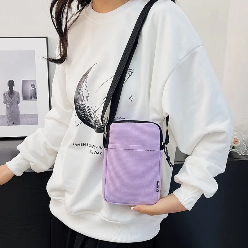 New Fashionable Mini Phone Pouch Square Vertical Tote Bag Simple Shoulder Bag Portable Lightweight Canvas Coin Crossbody Bag