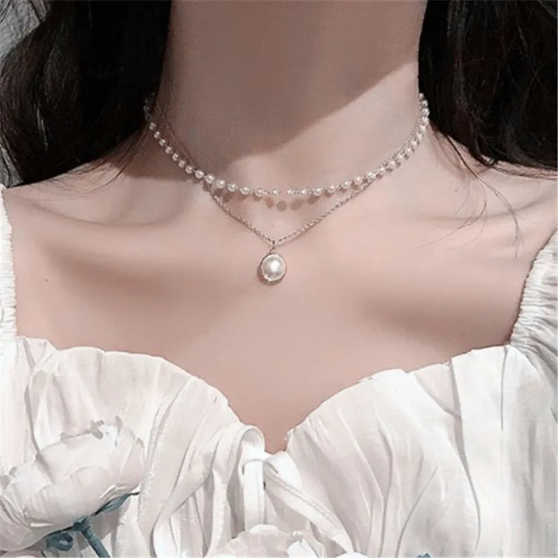 New Korean Pearl Necklaces for Women Gold Color Link Chain Choker Fashion Neck Accessories Elegant Collar bijoux femme