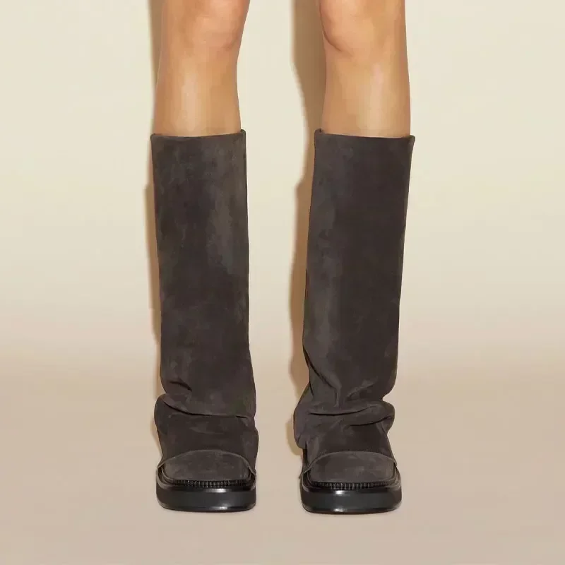 New Large Walled Flat Bottomed Round Toe Sleeve Knee High Pleated Women’s Boots Retro Knight Boots Shoes for Women