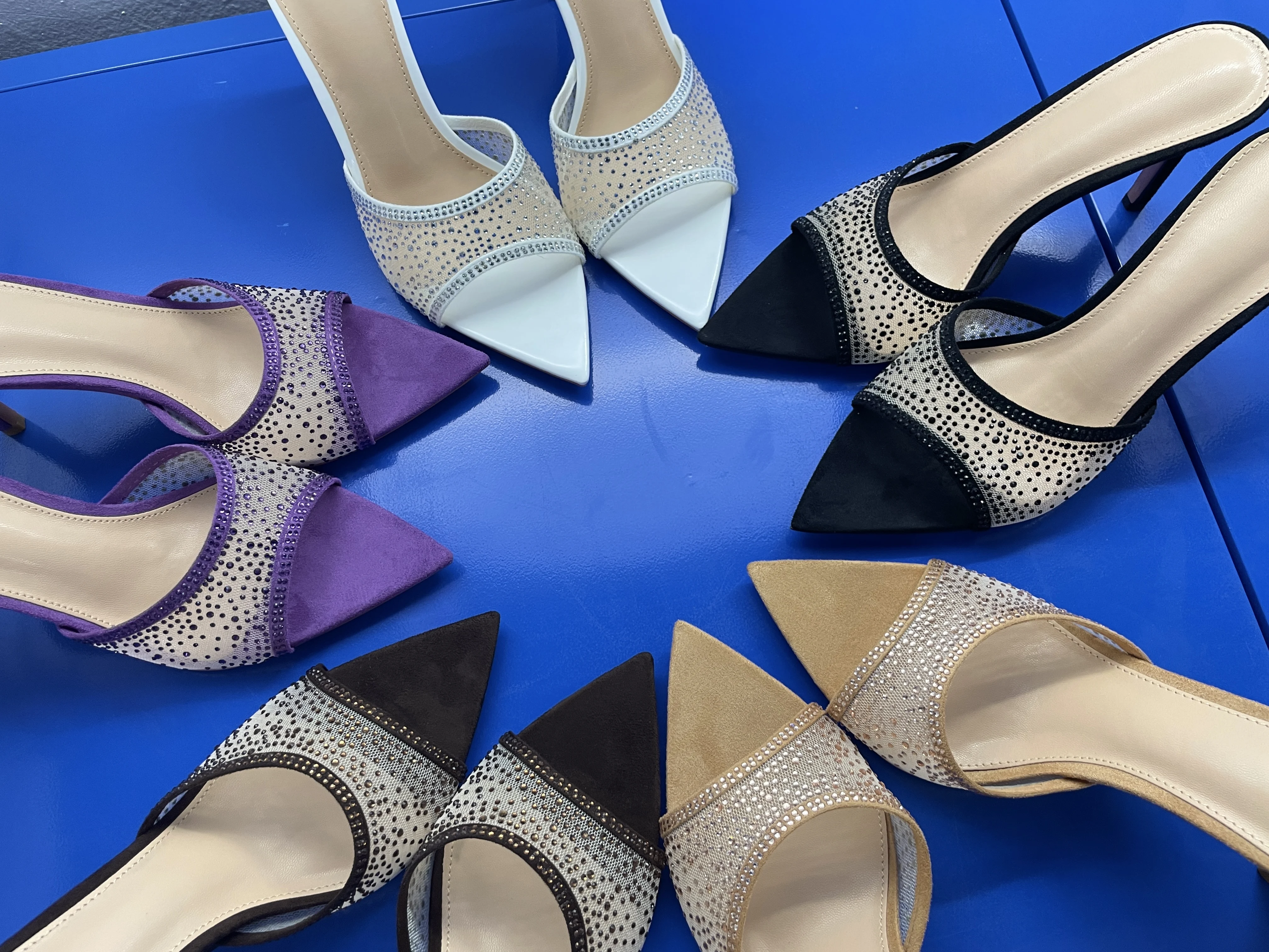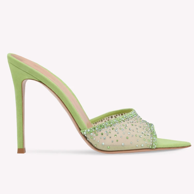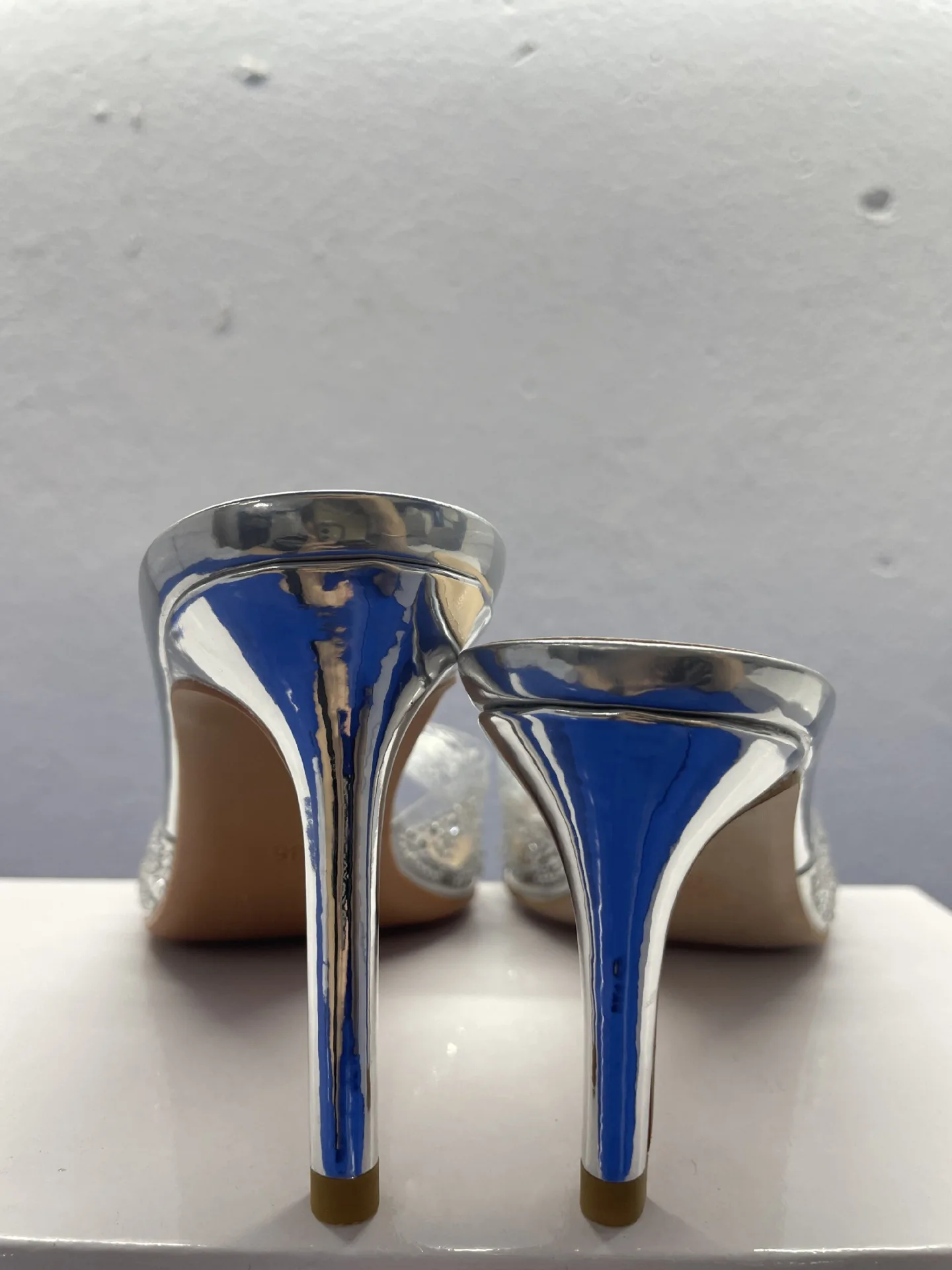 New Summer Women’s High-heeled Sandals Stiletto Rhinestone High-heeled Slippers Pointed Toe Open Toe Slip-on High-heeled Sandals