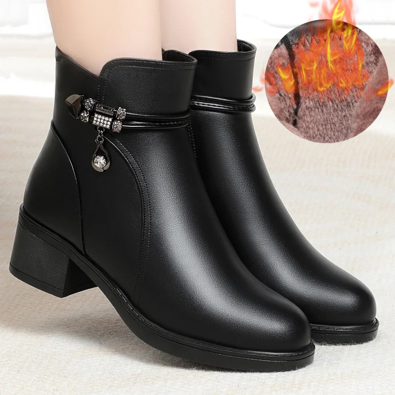 New Women’s Boots Fashion Soft Leather Ankle Short Boot Wool Plush Platform Snow Boots for Women Winter Cotton Shoes