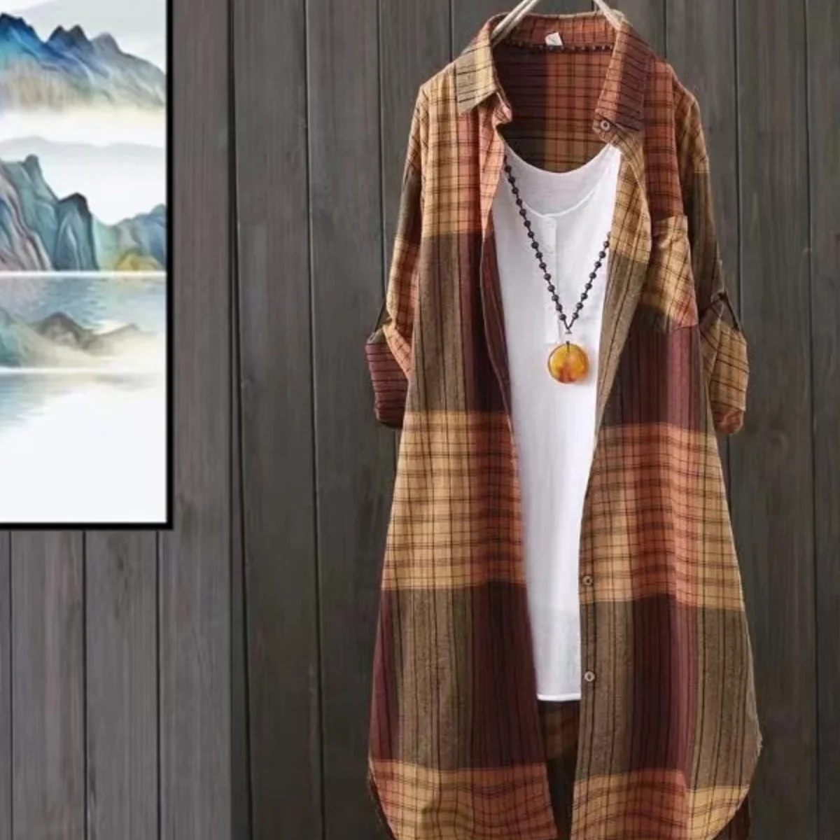 New Women’s Casual Fashion blouse temperament popular Shirt Plaid Lapel Loose Button Cardigan Top Suitable For Spring And Autumn