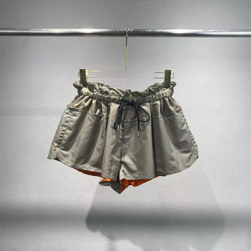 Nylon Women’s Shorts Y2k Pod Type Drawstring Tie Waisted Fashion Commuter Casual Peplum Shorts 2024 Early Autumn New