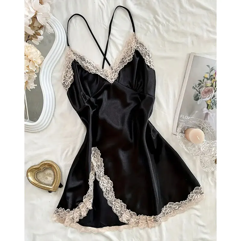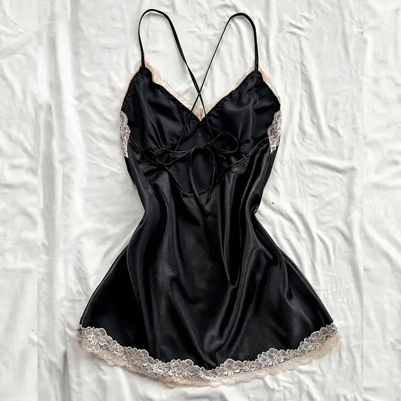 Off Shoulder Ultra Short Sexy Bras Pajamas Home Dresses Night Shirts Sexi Women’s Nightgown Silk Lingerie See Through Dress