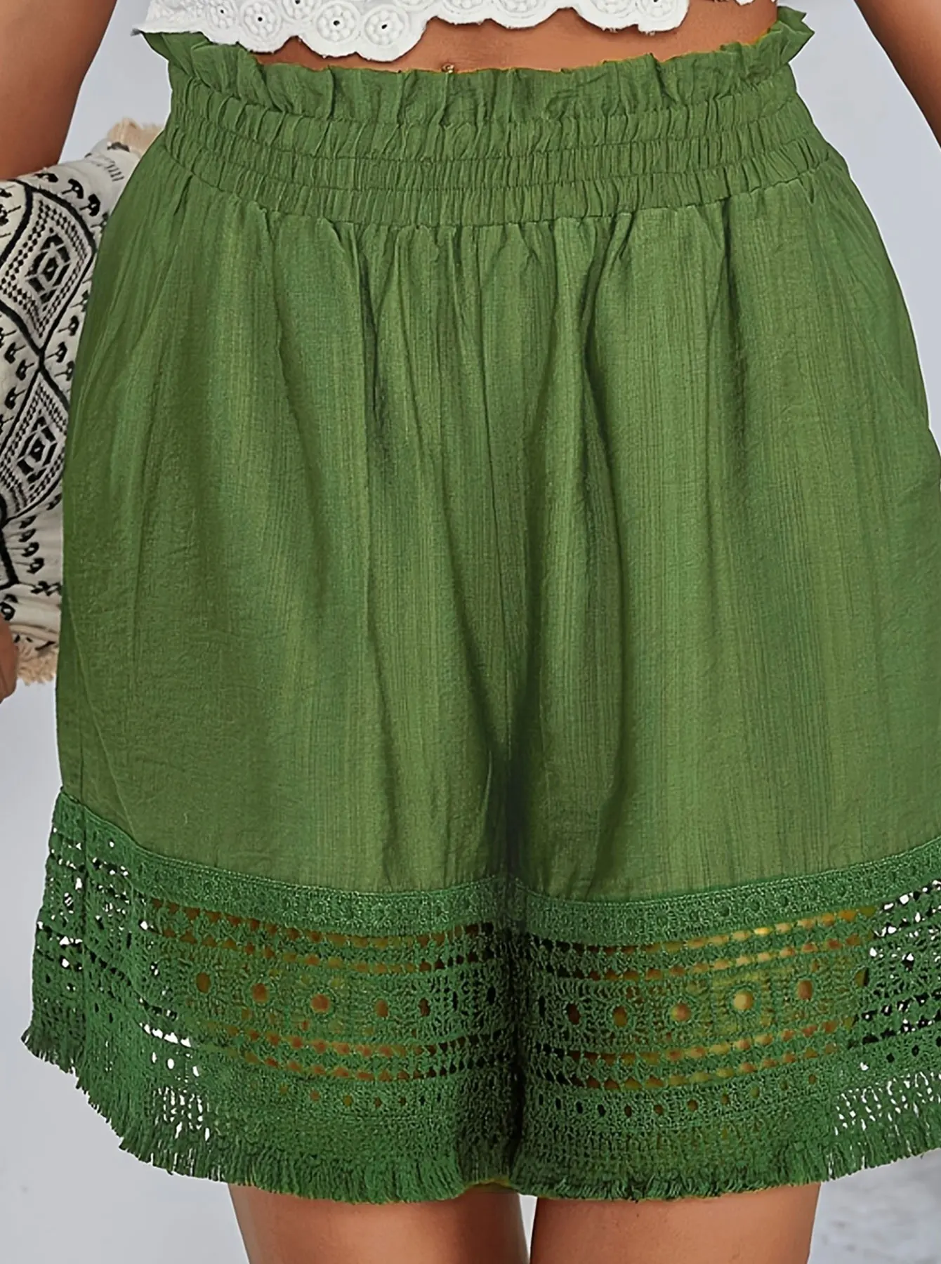 Olive Women’s Oversized Woven Solid Color Casual Shorts Comfortable Loose Fit High Waist Knee-Length Summer Fashion Olive